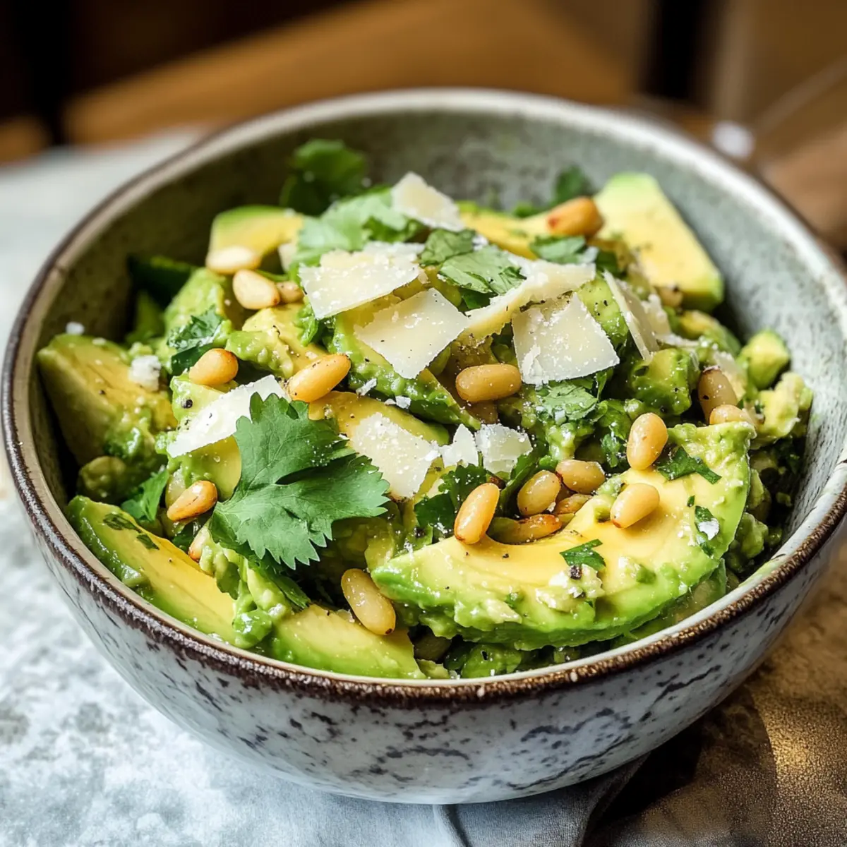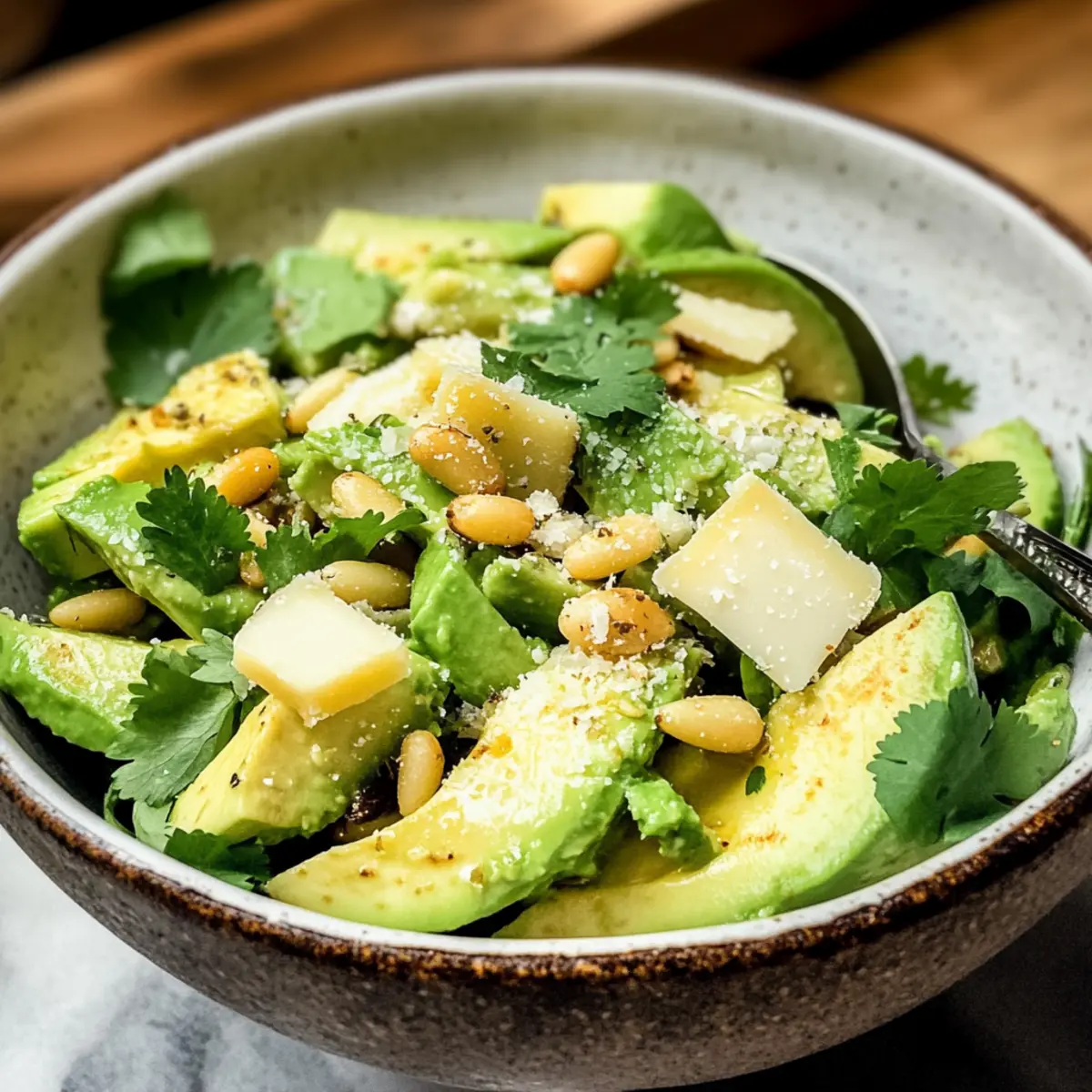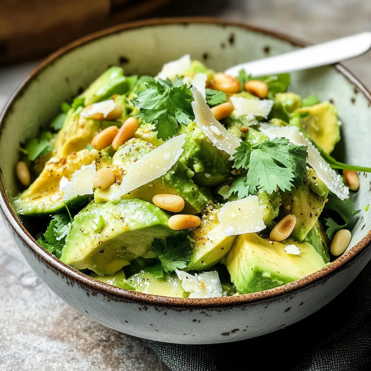 Der 5-Minuten-Avocado-Salat enthält Nüsse (Pinienkerne) und Milchprodukte (Manchego-Käse), die bei einigen Menschen Allergien auslösen können. Achte darauf, Alternativen zu wählen, wenn du Allergien hast, oder lasse die Nüsse ganz weg.