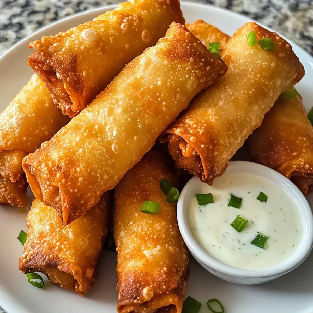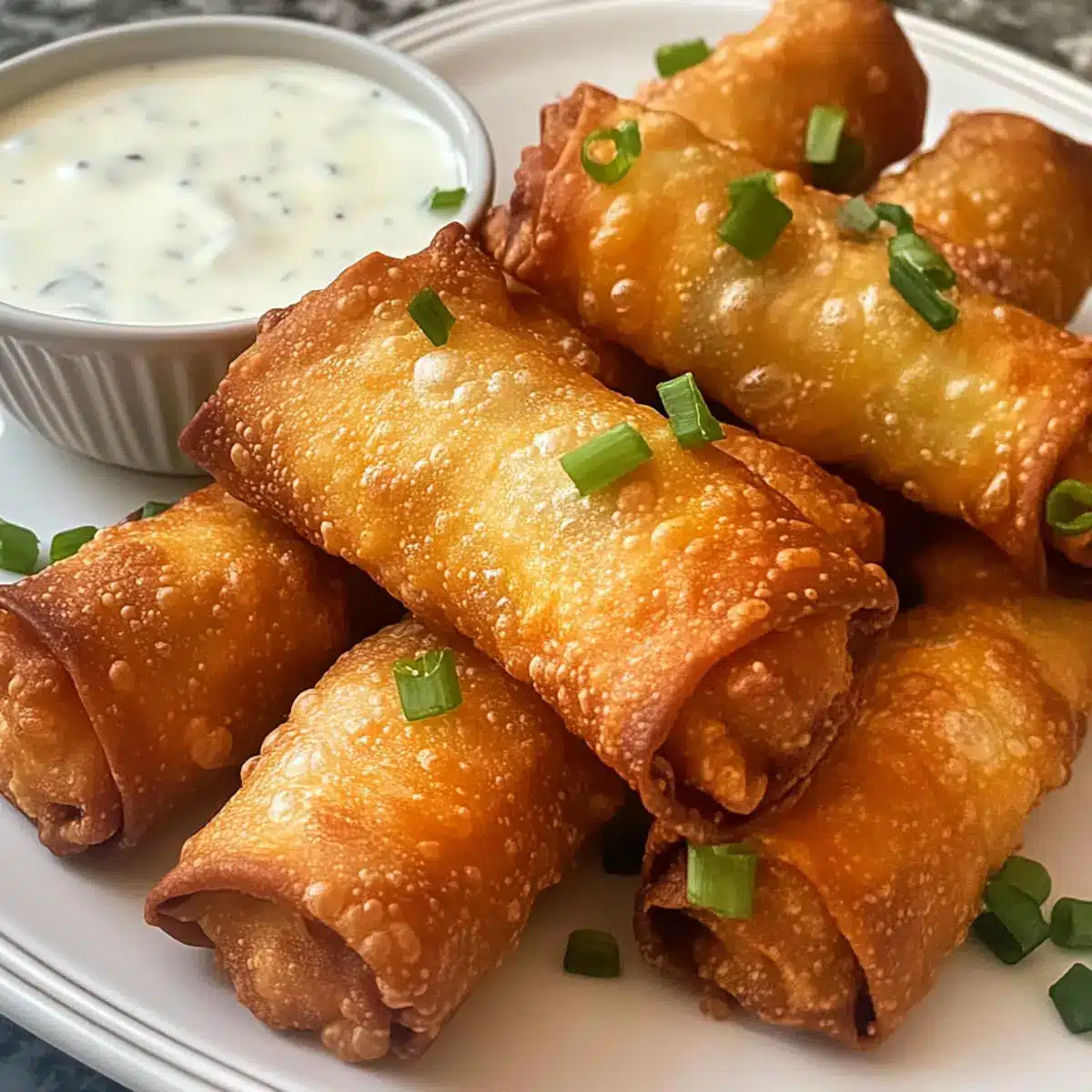 - Die fertigen Eirollen auf Küchenpapier abtropfen lassen und mit einer Ranch-Dip-Sauce servieren.