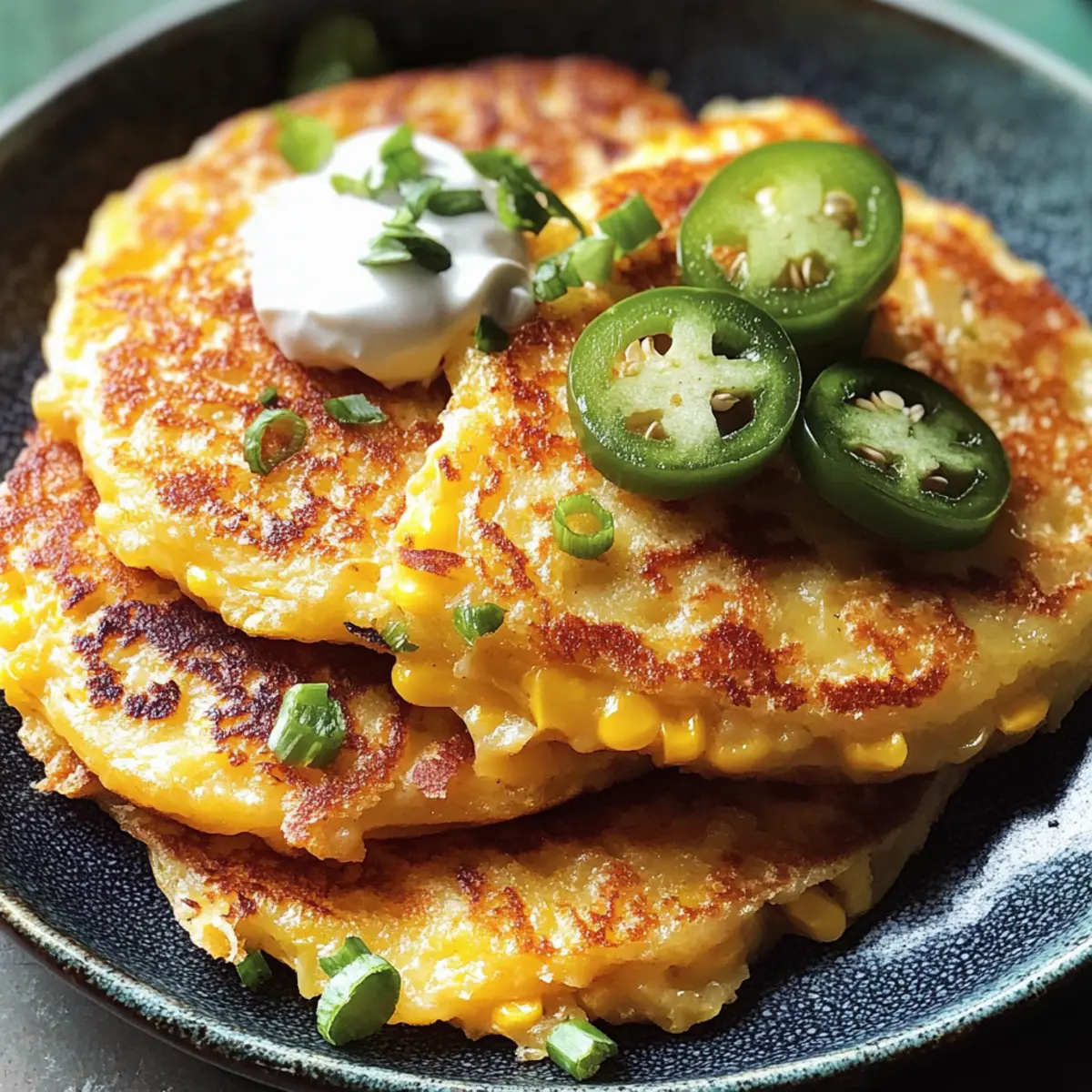 Wenn sich Blasen auf der Oberfläche der Pfannkuchen bilden, lege bei Bedarf einige in Scheiben geschnittene Jalapeños darauf. Wende den Pfannkuchen vorsichtig mit einem Spatel und koche die andere Seite, bis sie ebenfalls goldbraun ist, etwa 2 Minuten. Das Aroma wird deine Küche erfüllen!