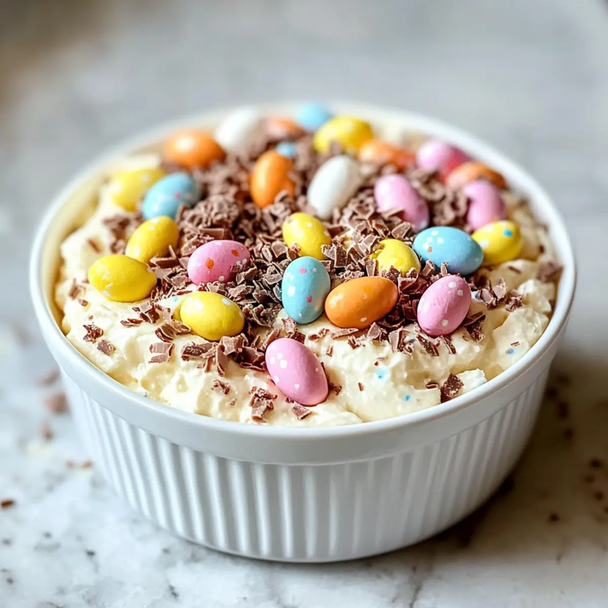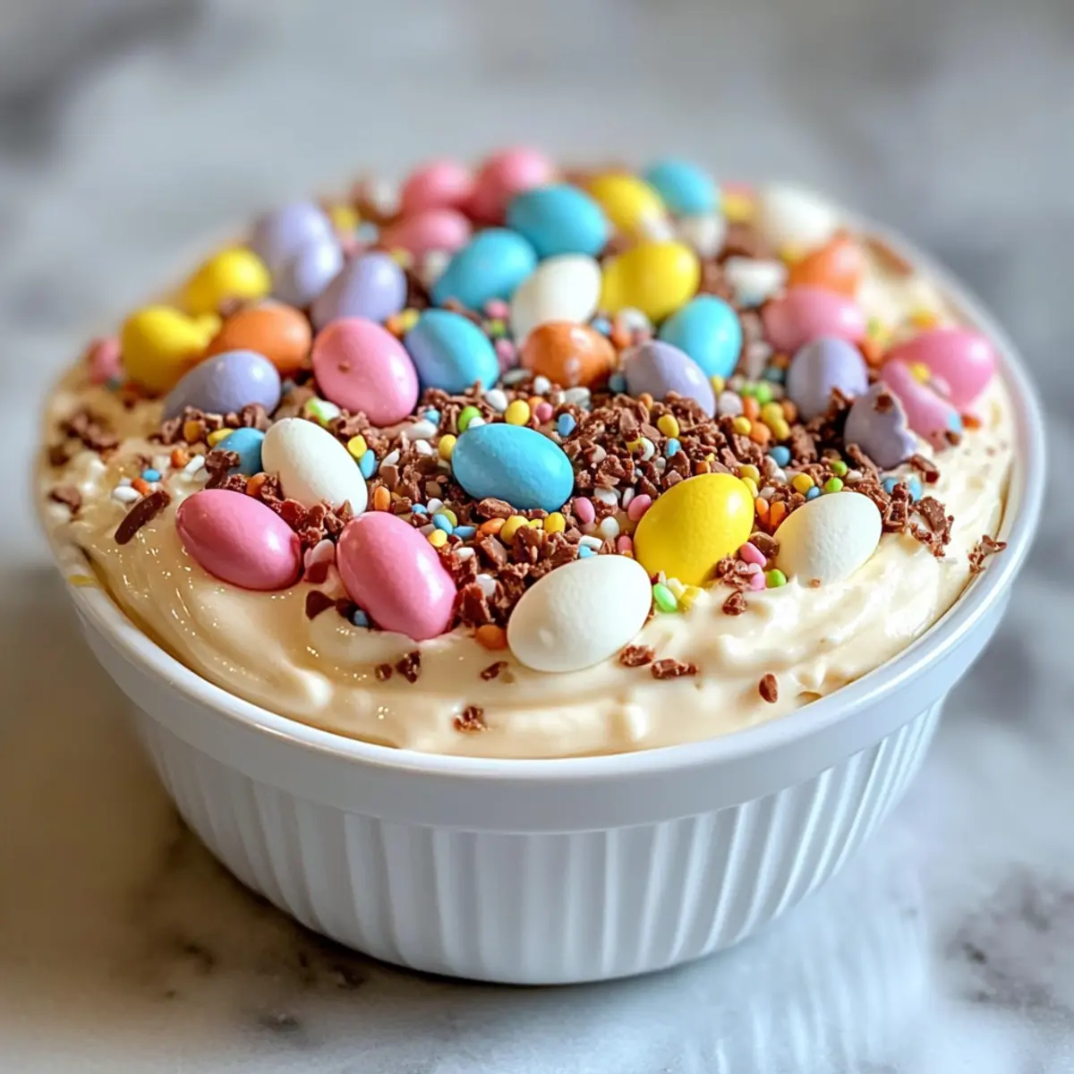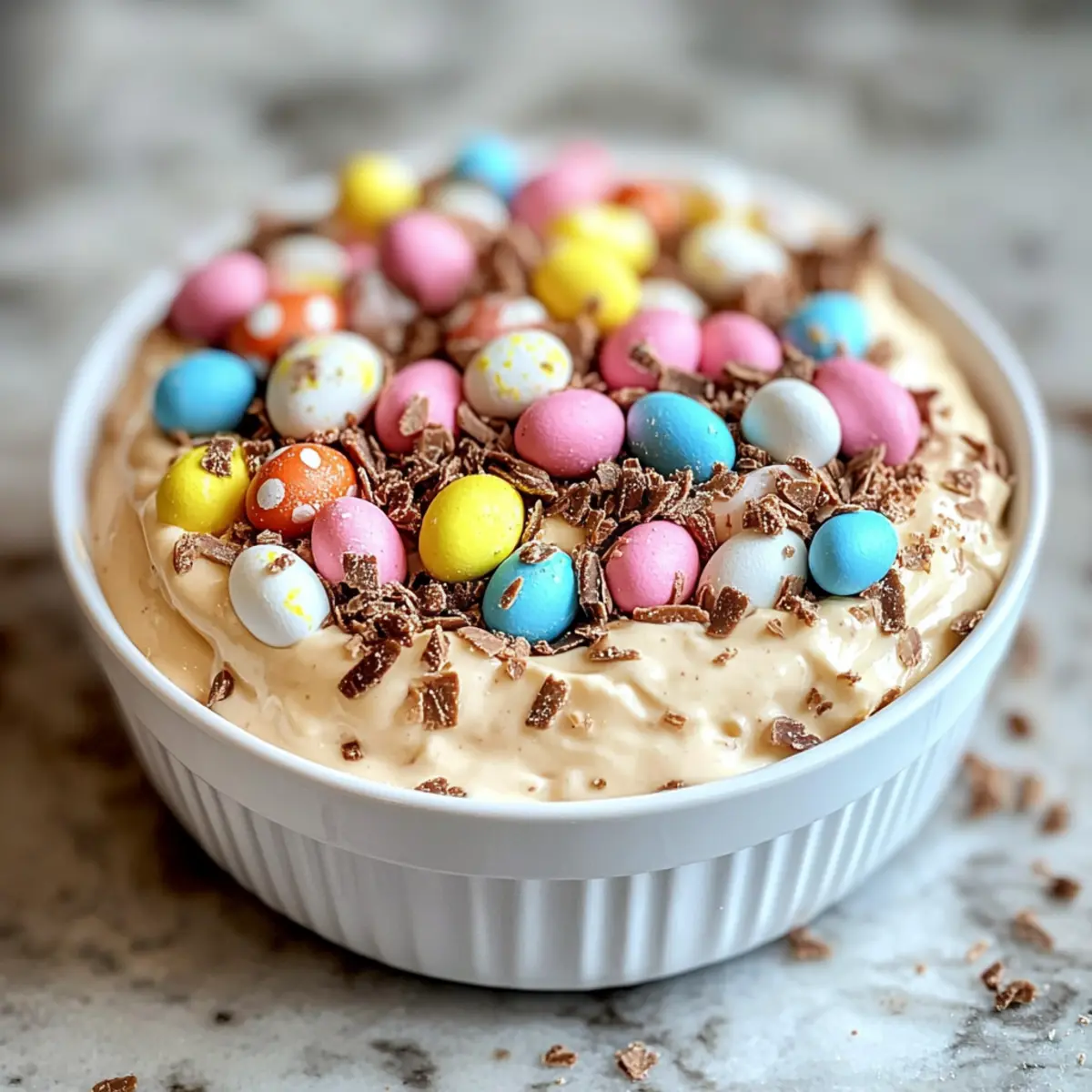 Nostalgischer Genuss: Die bunten Cadbury Mini Eggs bringen nicht nur Farbe, sondern auch eine süße Crunch-Textur in diesen Dip.