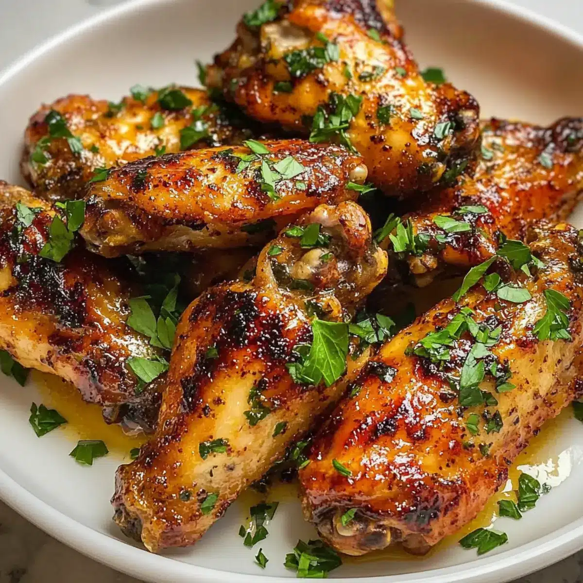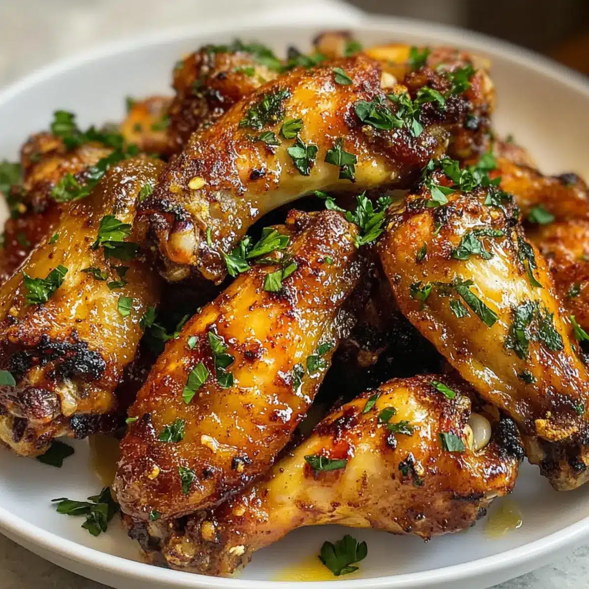 - Bestreue die Flügel optional mit frisch gehackter Petersilie und serviere sie sofort.