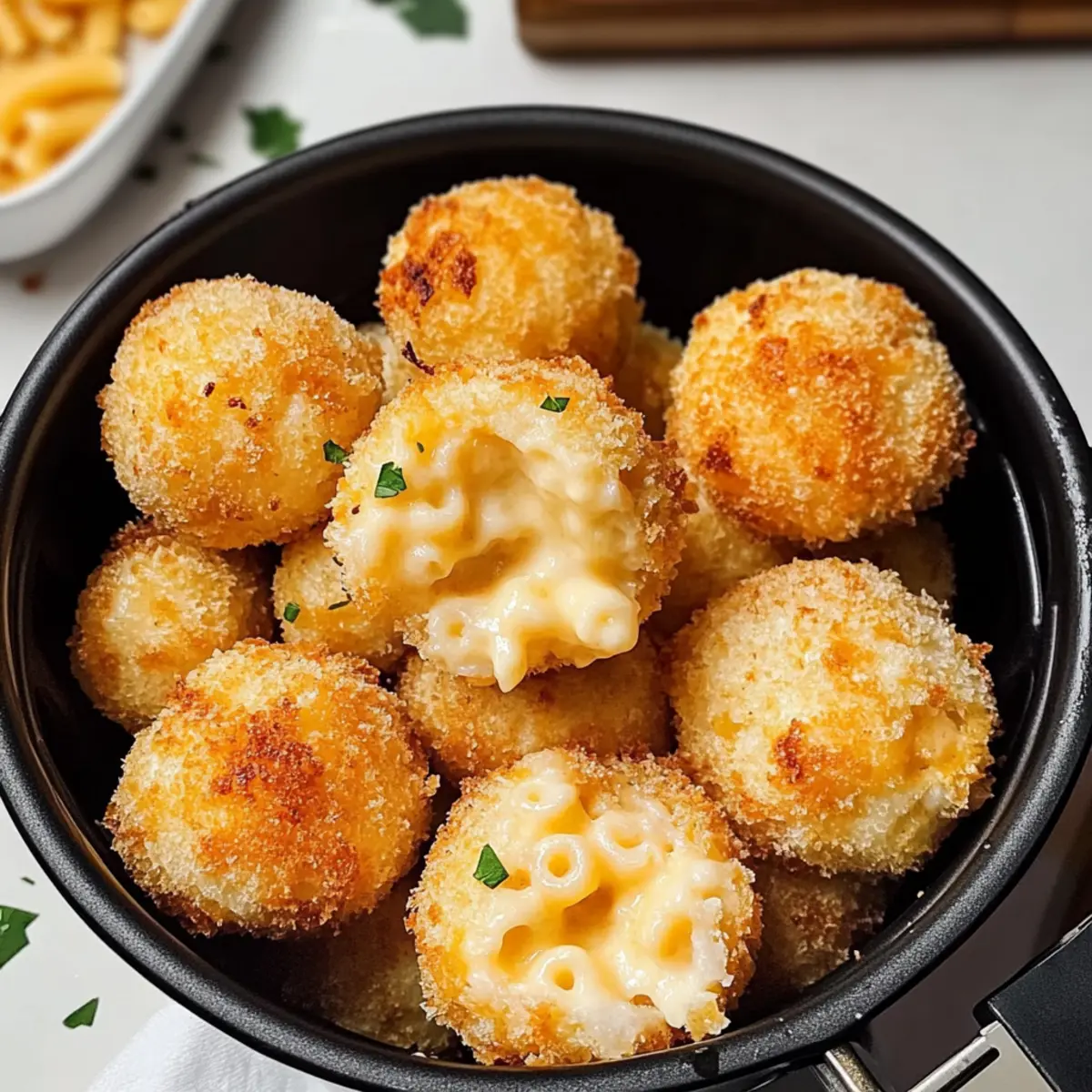 Luftfritteuse gebratene Macaroni und Käsebällchen genießen