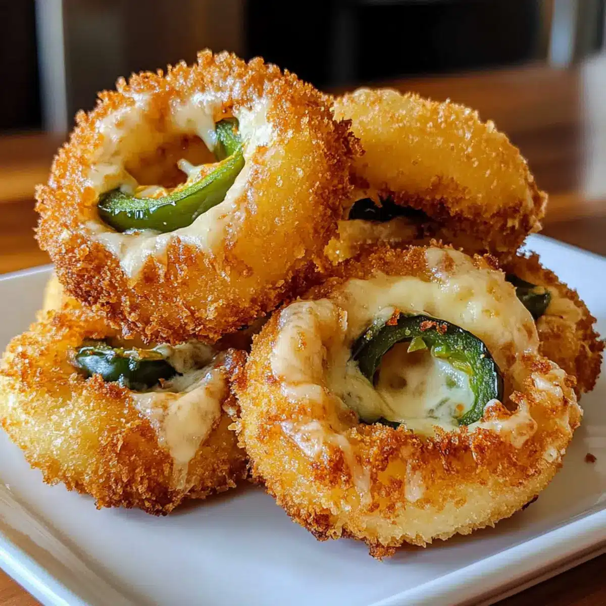 Jalapeño-Popper gefüllte Zwiebelringe für Snack-Liebhaber