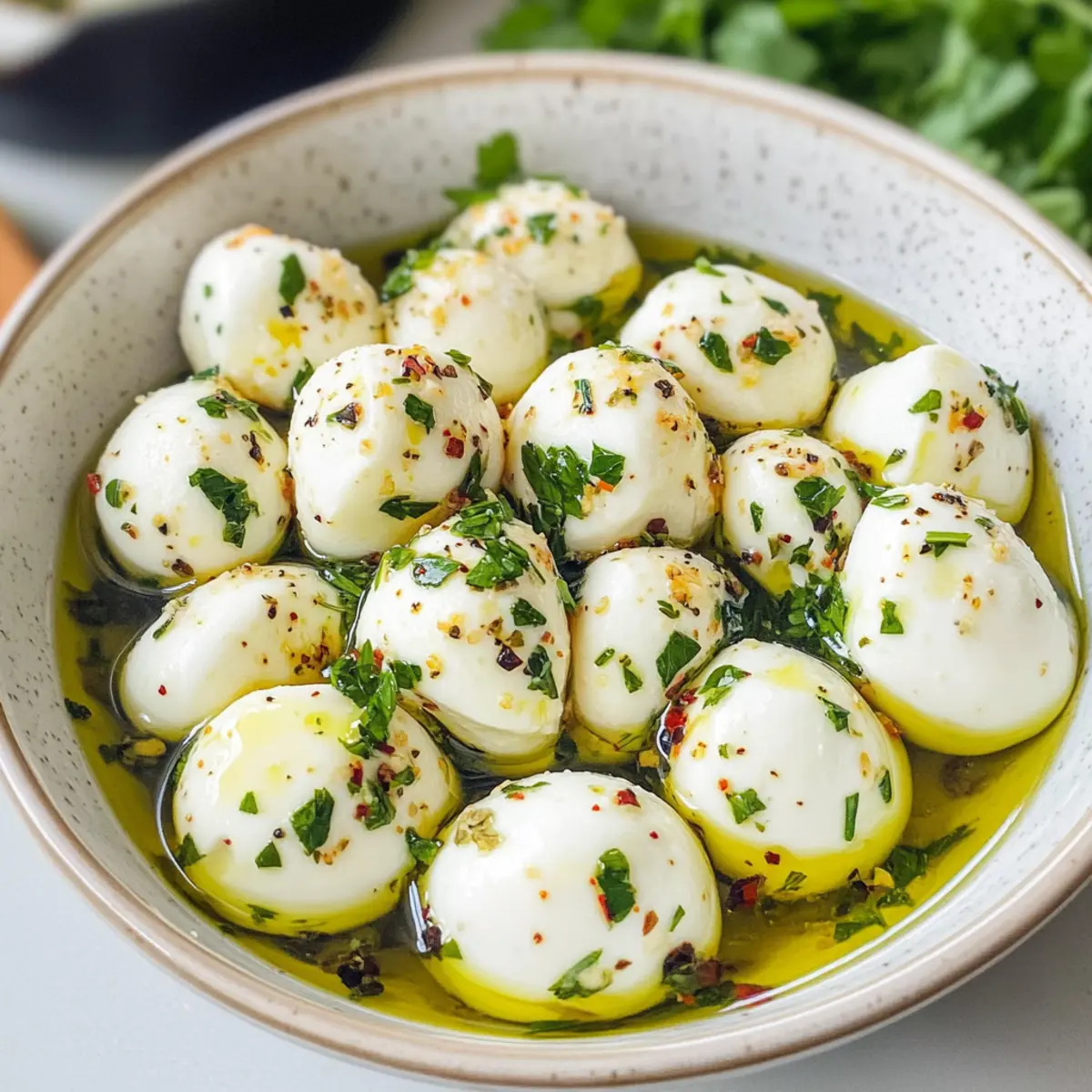 Eingelegte Mozzarellakugeln mit Kräuteröl