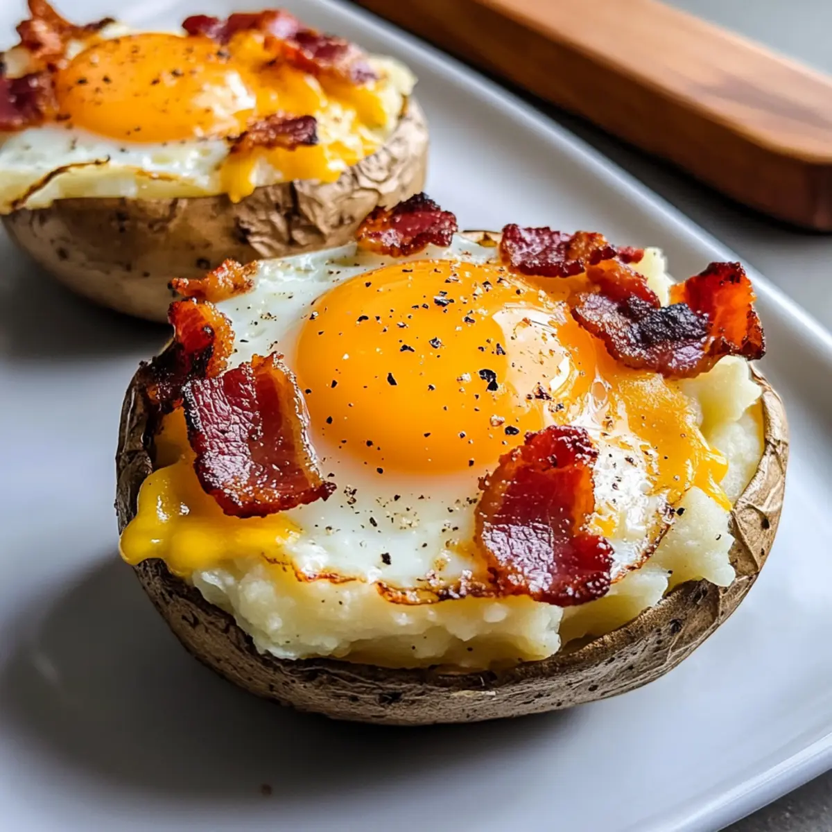 Gebackene gefüllte Frühstückskartoffeln mit Käse