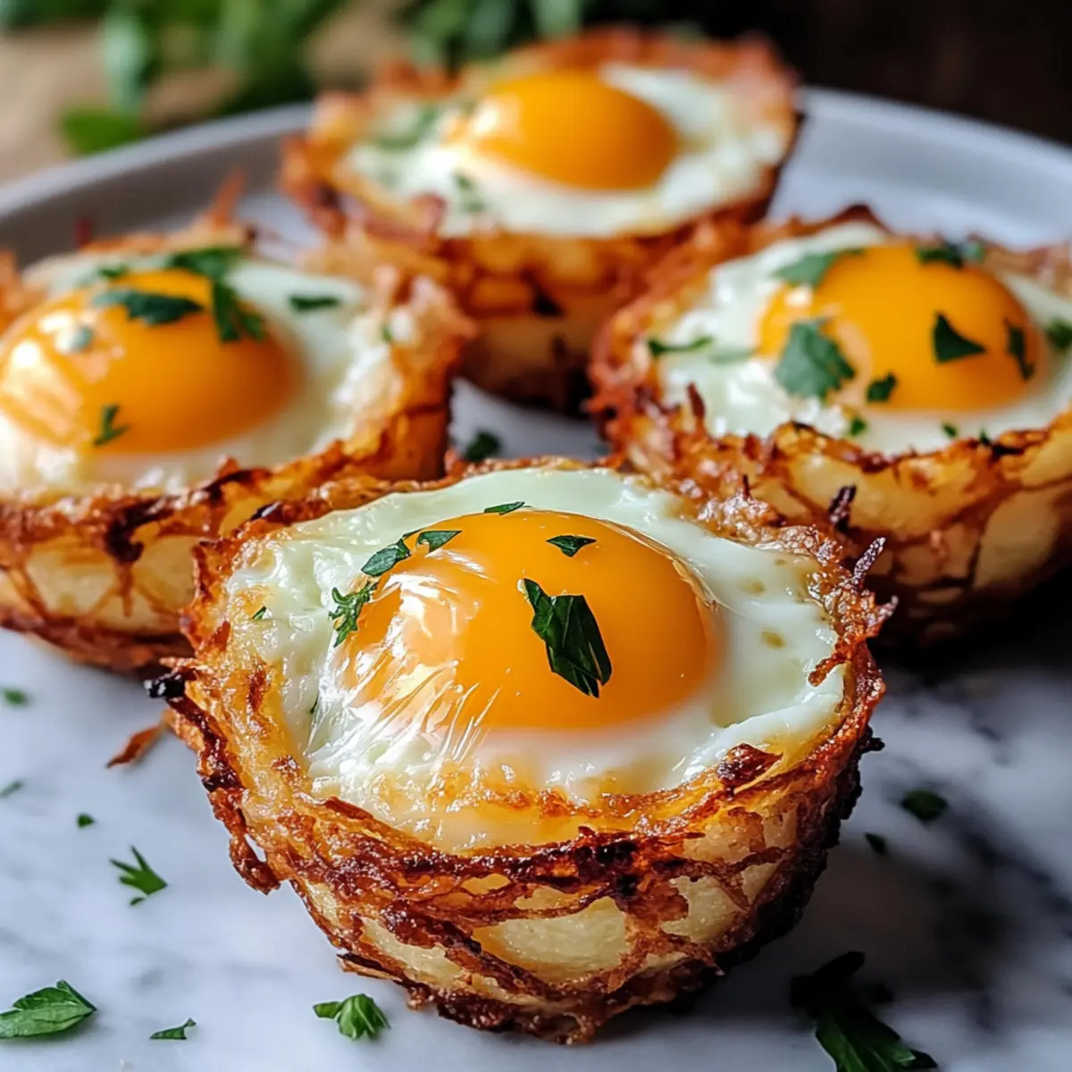 Hashbrown-Ei-Schalen mit geschmolzenem Käse Genuss