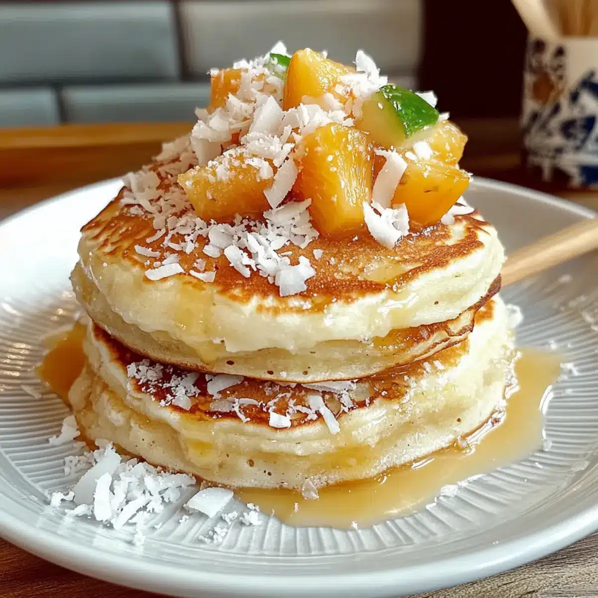 Kokosnusscreme-Pfannkuchen für ein tropisches Frühstück