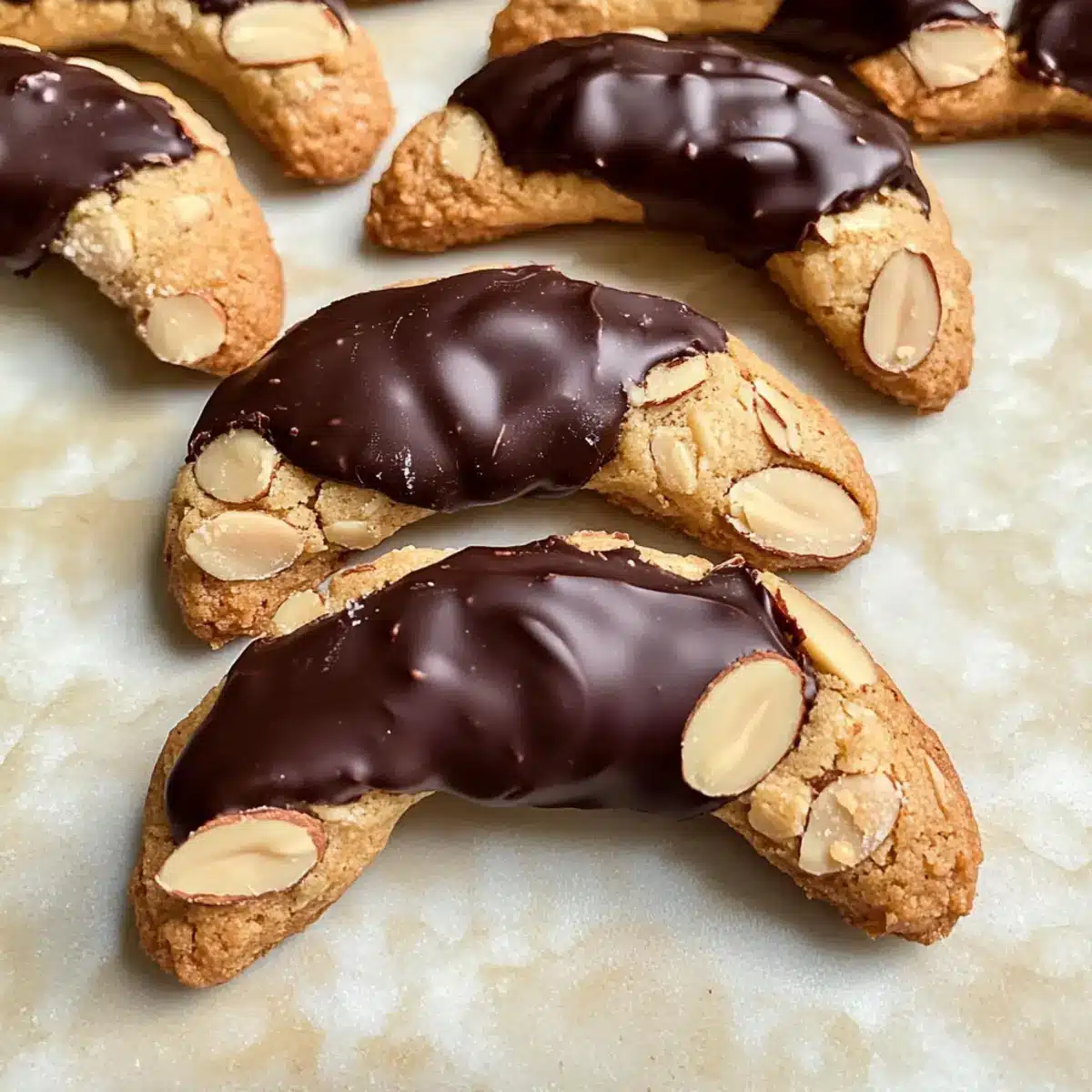 Schokoladenüberzogene Mandelhörnchen Kekse schnell gemacht