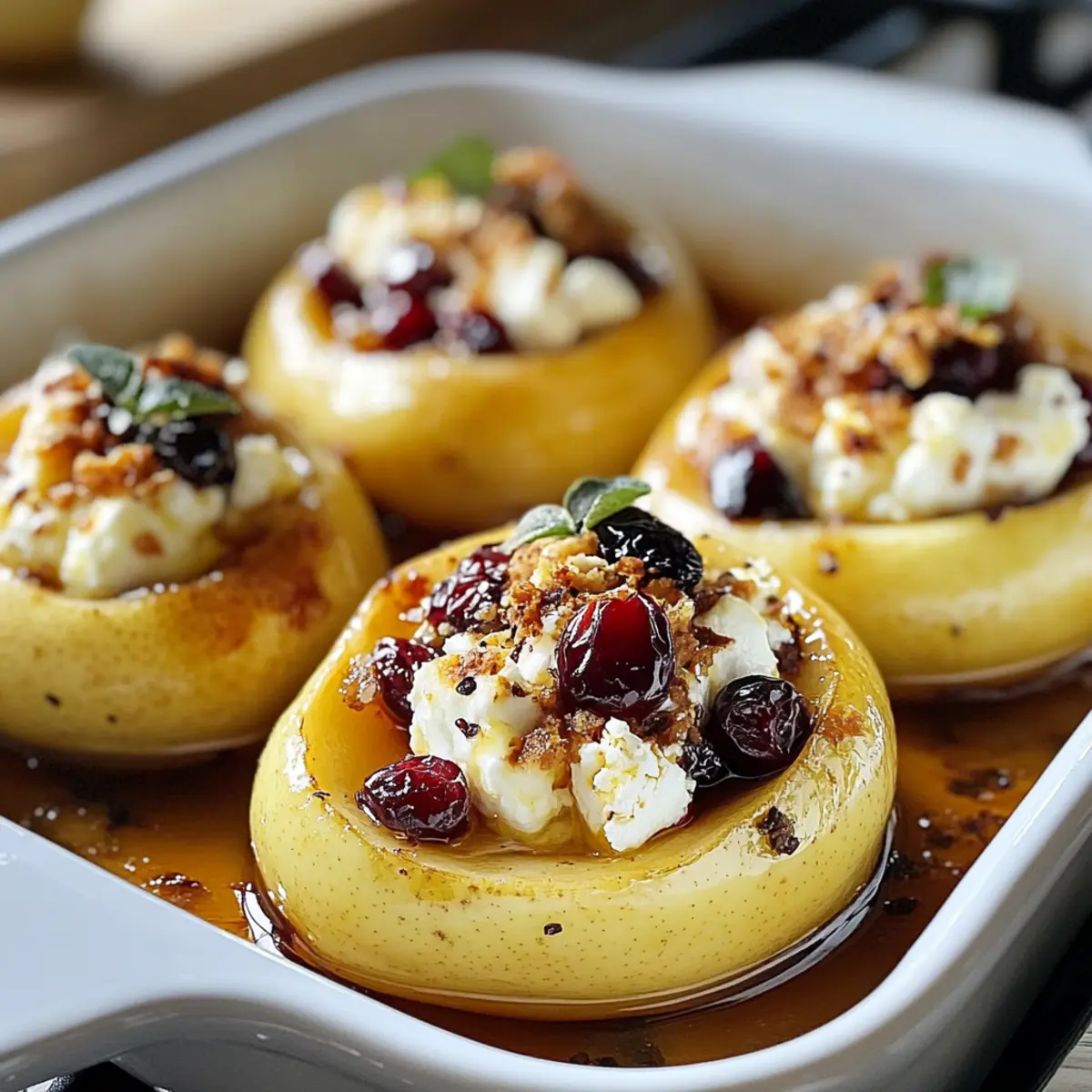Gebratene Birnen mit Honig-Feta und Cranberries zaubern