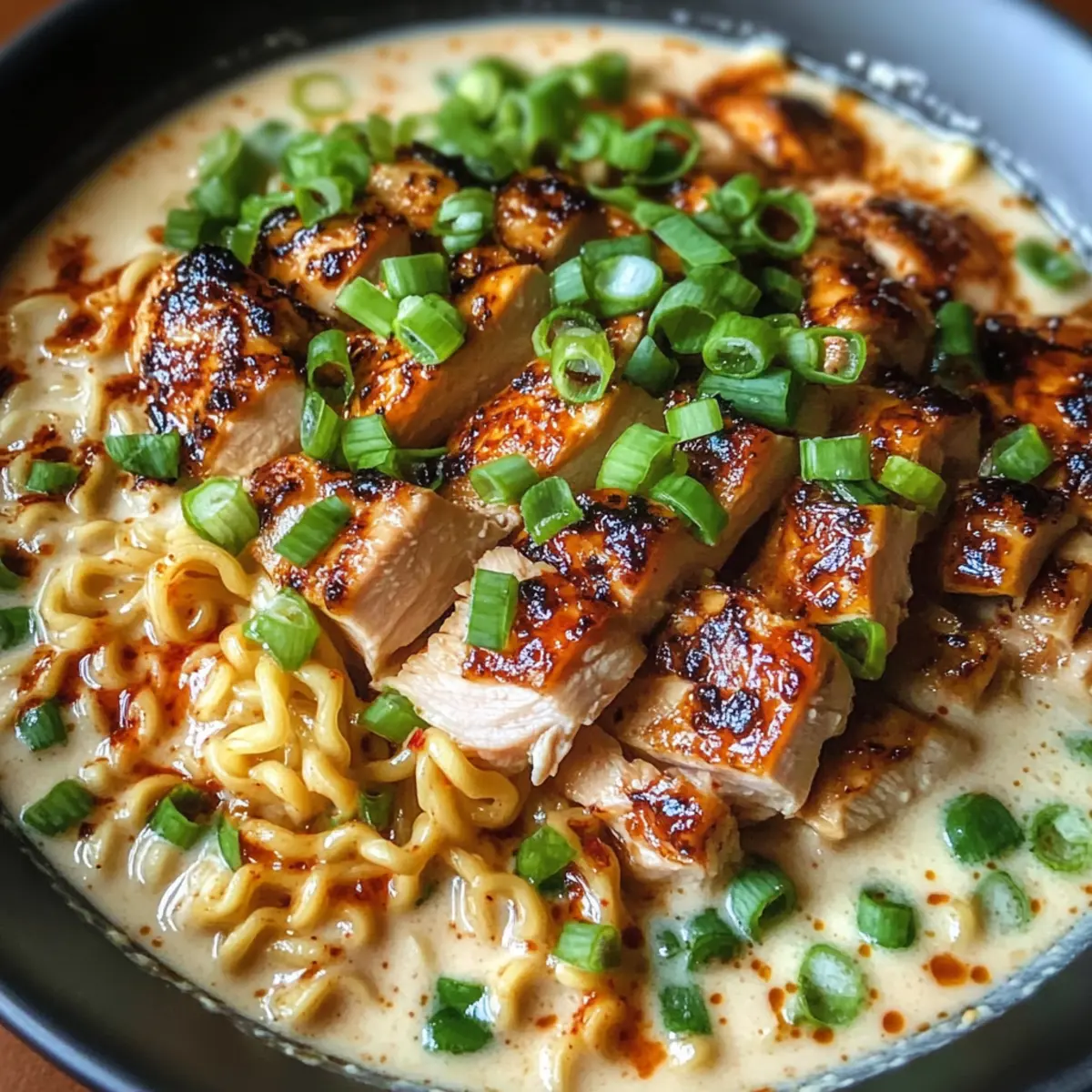 Feuriges Hähnchen cremige Knoblauch Ramen für Zuhause