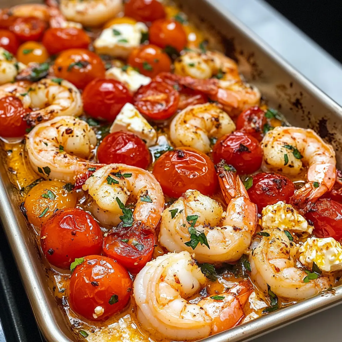 Gebratener Feta mit Garnelen und Tomaten Vielfalt