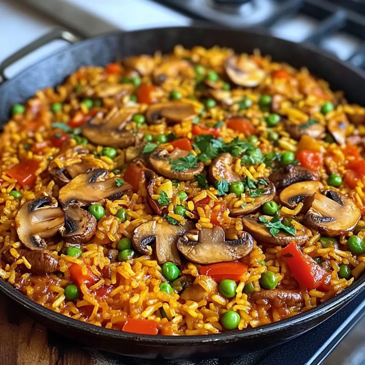 Vegane Paella mit gemischten Pilzen für Genussmomente