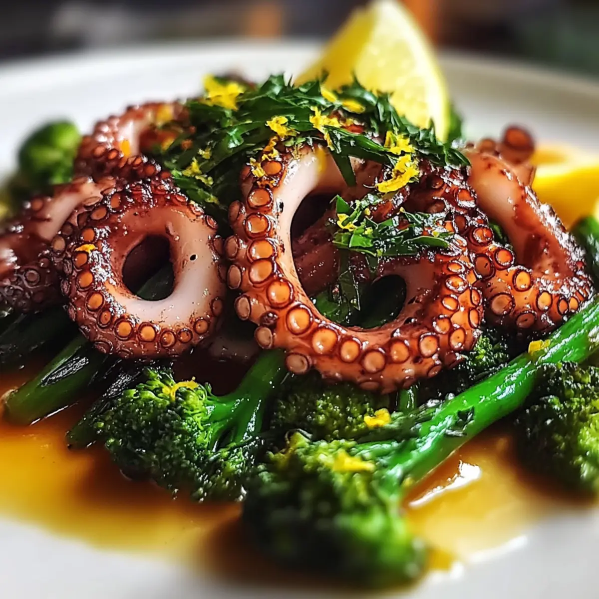 Baby-Oktopus mit knusprigem Brokkoli für Feinschmecker