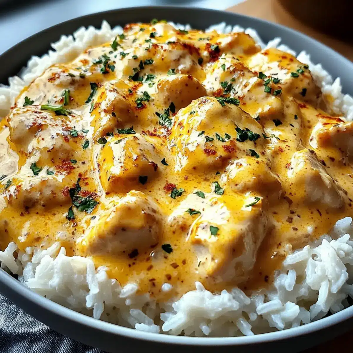Cremige überbackene Hähnchen und Reis für Zuhause