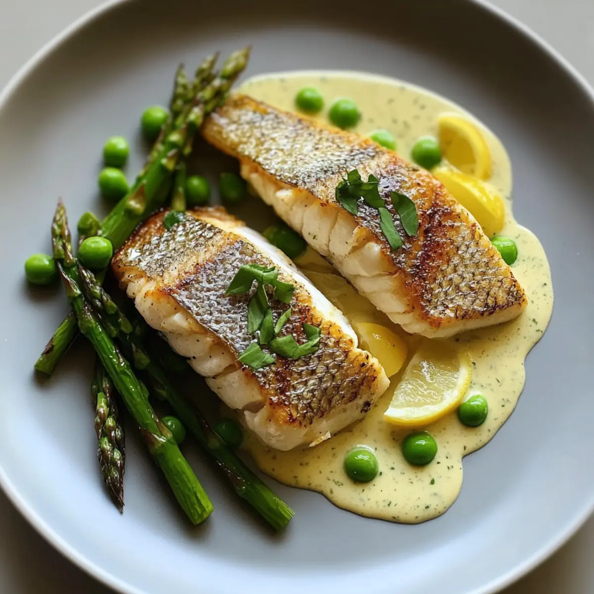 Gegrillter Barsch mit Senf-Estragonsauce genießen