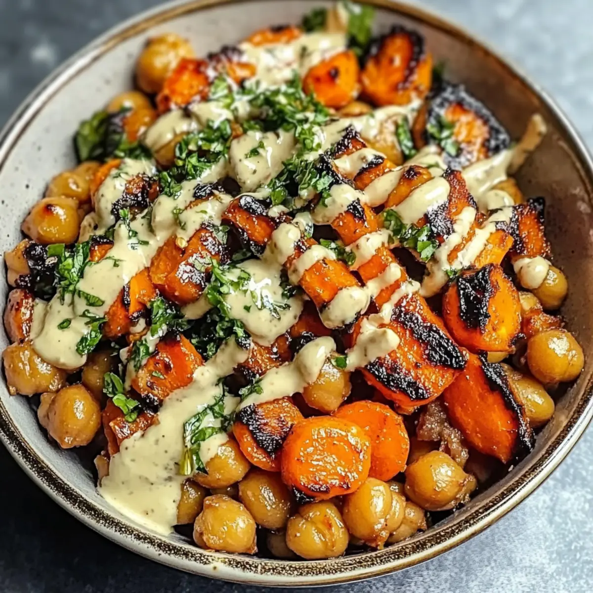 Ein-Pfanne-Röstmöhren- und Kichererbsenschüssel schnell zubereitet