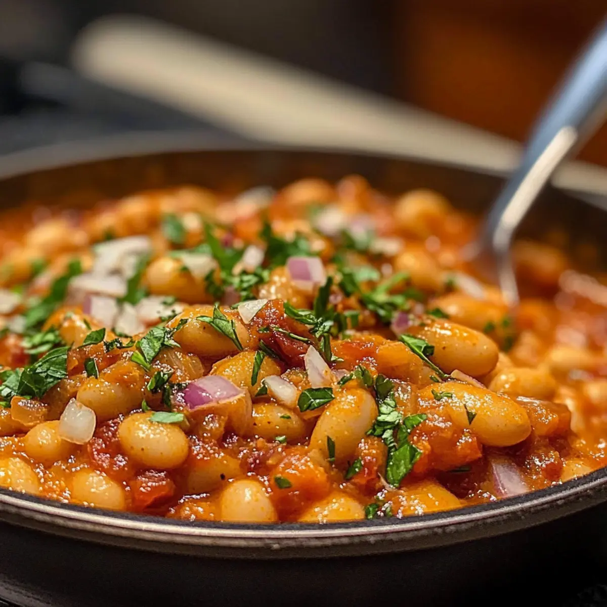 Cremige Tomaten- und Bohnenpfanne für Genießer