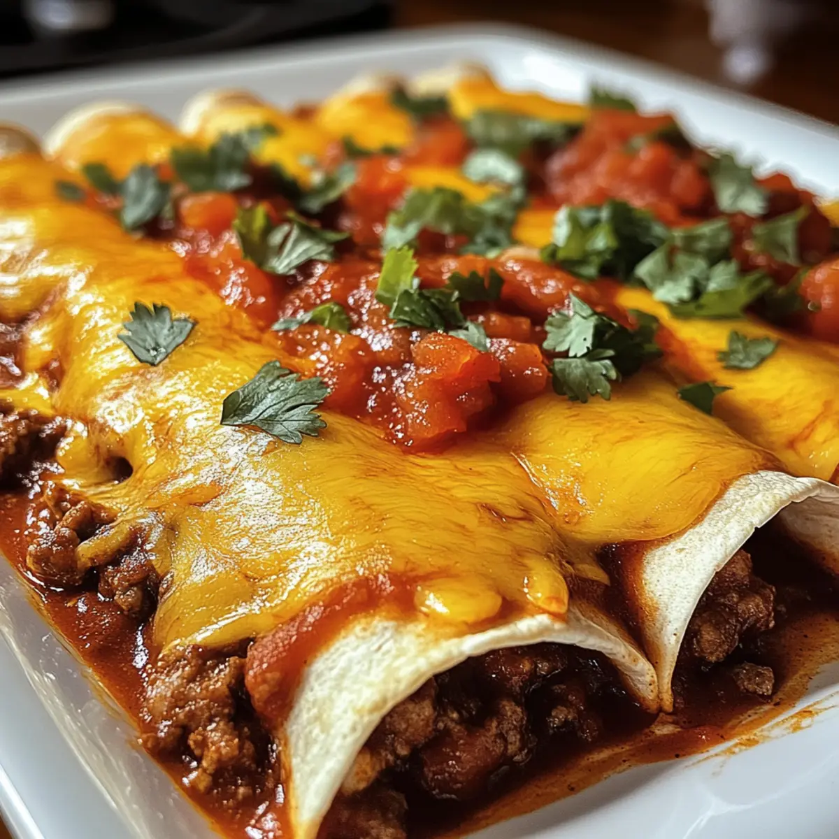 Enchiladas gefüllt mit Hackfleisch und Käseüberbacken