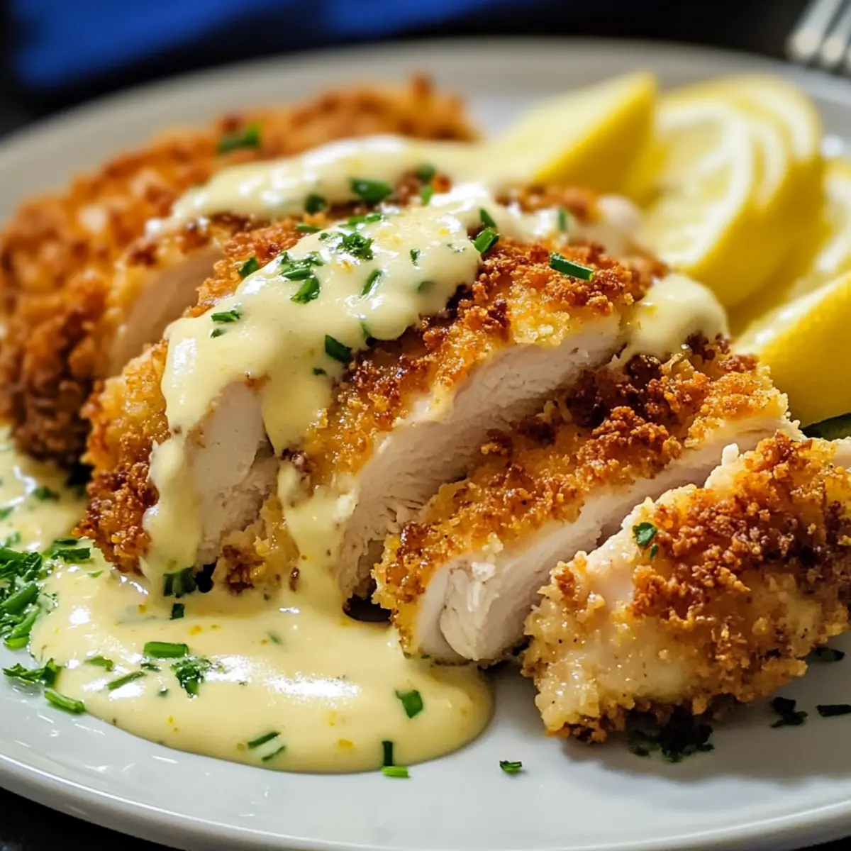 Panko-Hühnchen mit Zitronen-Cremesauce genießen
