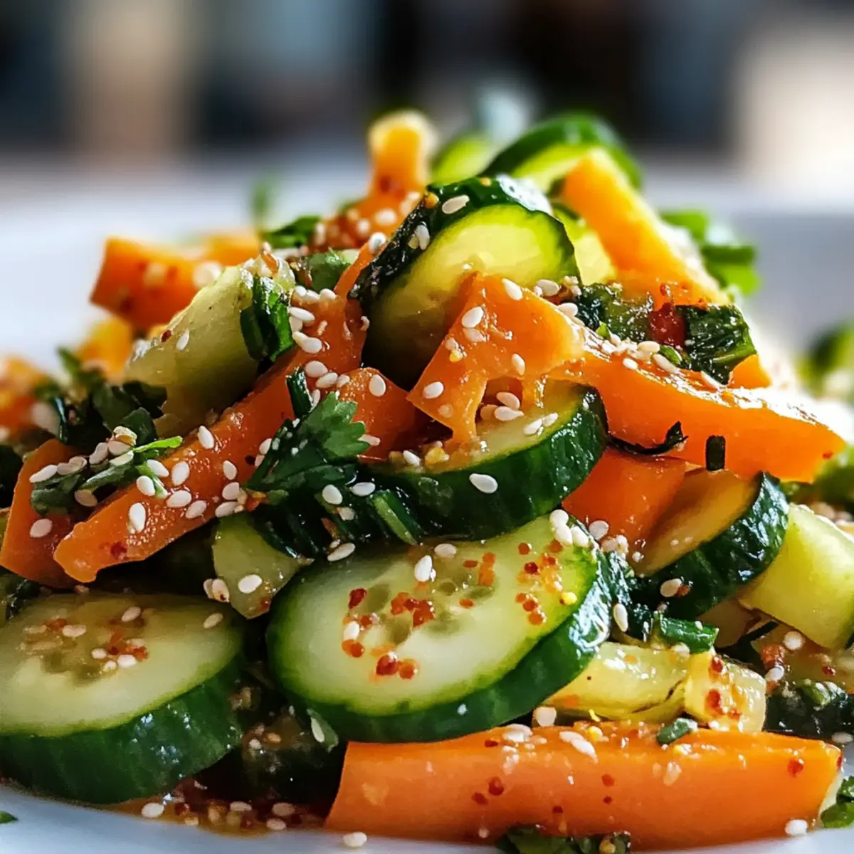 Frischer Gurkenkarottensalat mit pikantem Dressing