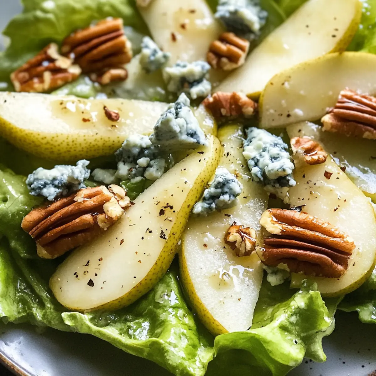Römersalat mit Birnen, Blauschimmelkäse und Pekannüssen