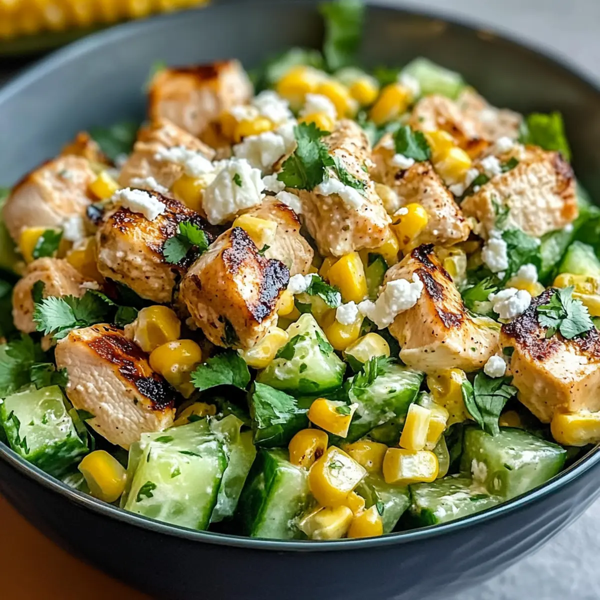 Straßenmais cremiger Gurken-Hühnchen-Salat für den Sommer
