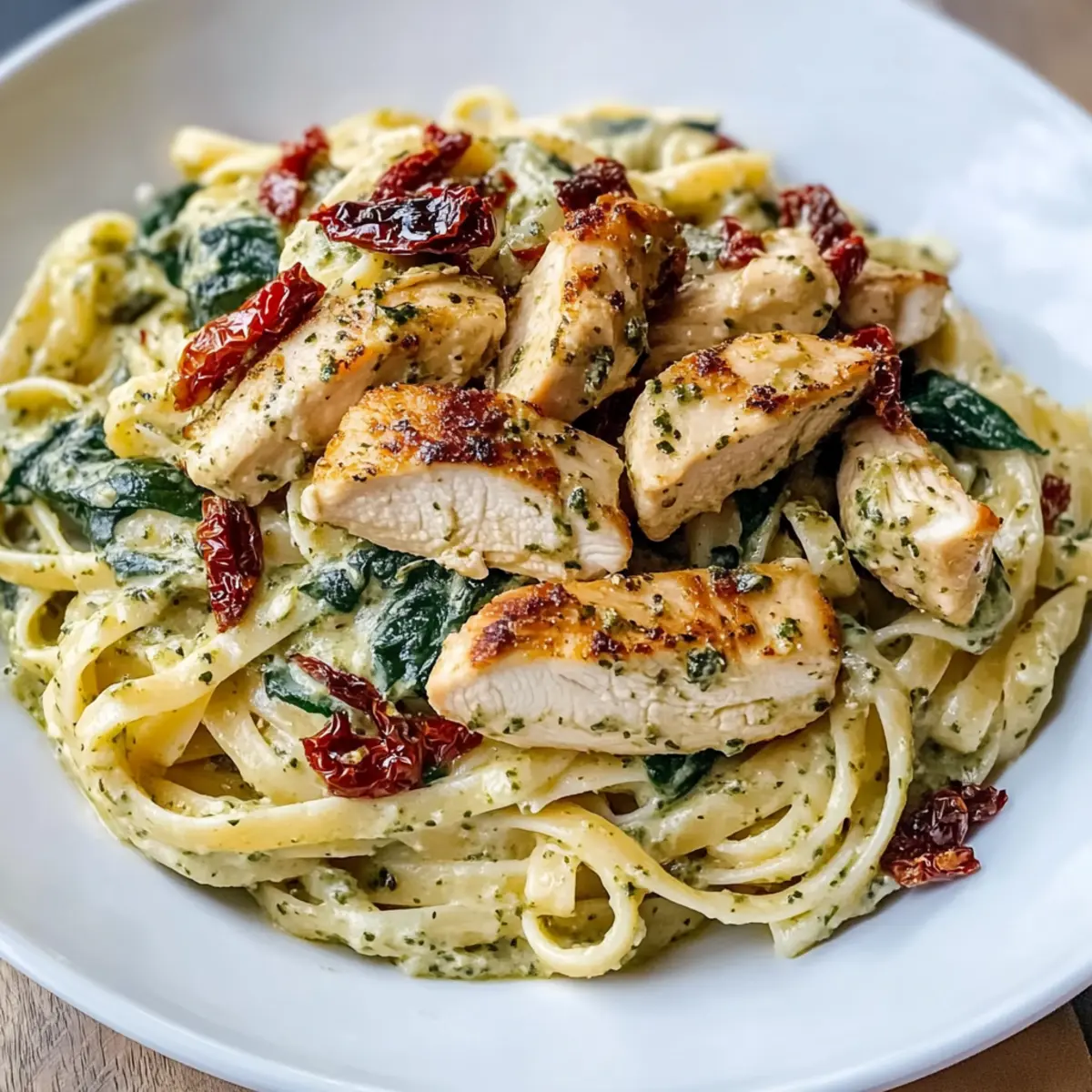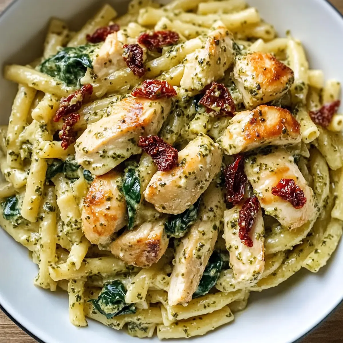 Cremige Hähnchen-Pesto-Pasta mit Spinat einfach gemacht