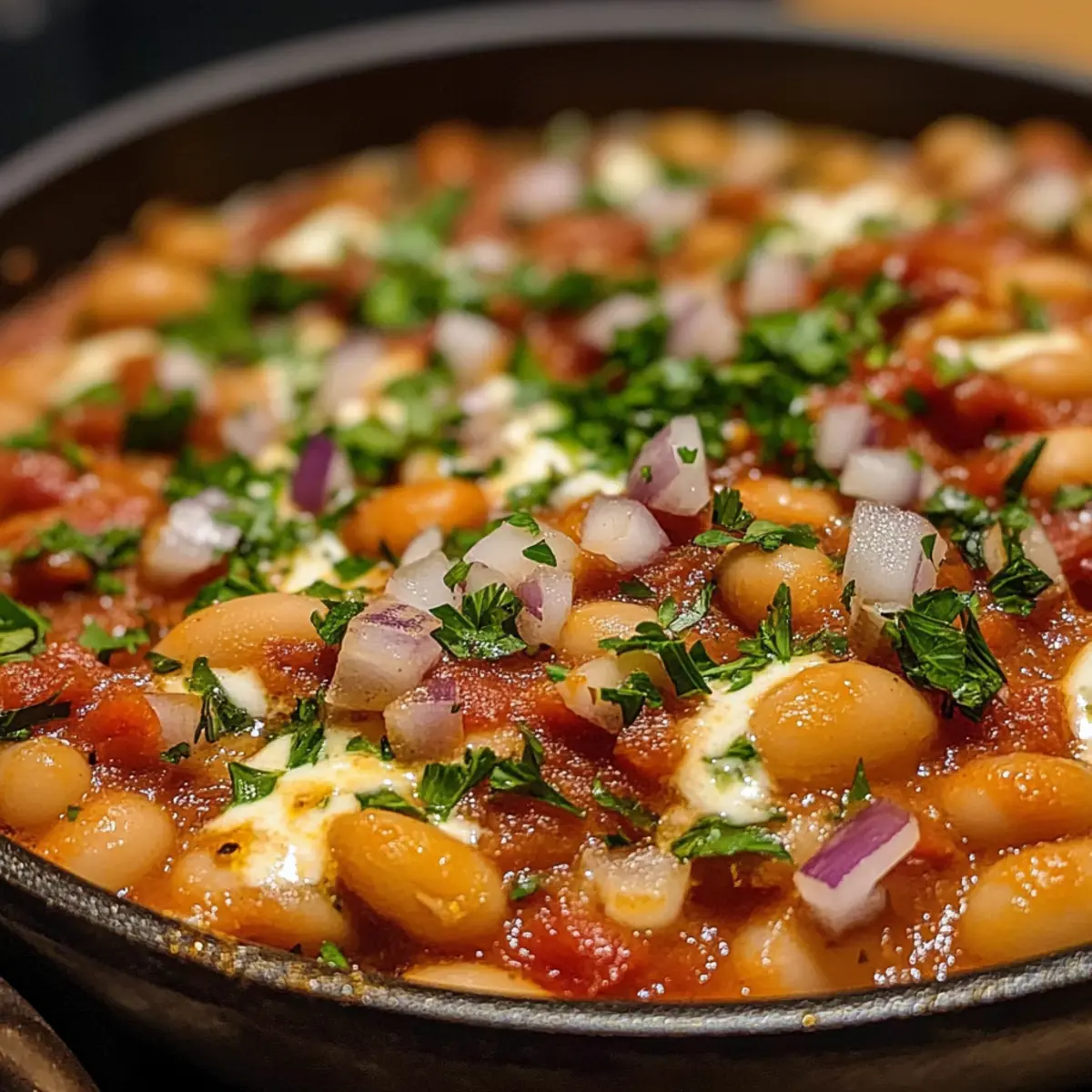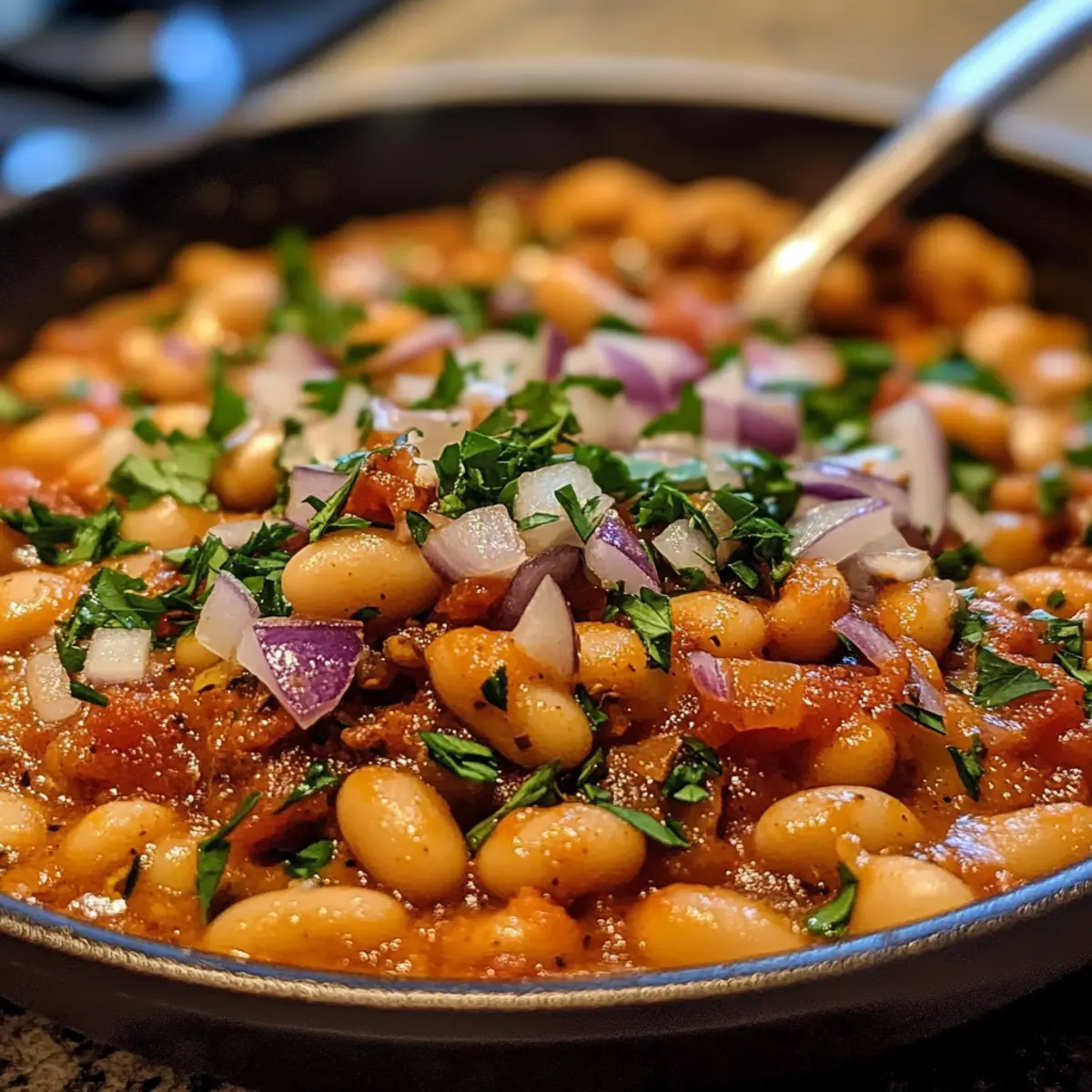 Cremige Tomaten- und Bohnenpfanne für Genießer