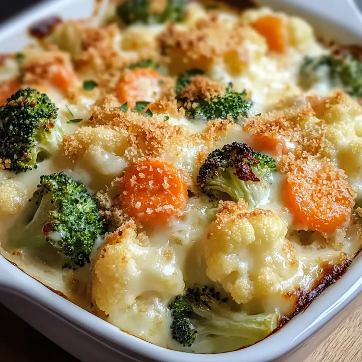 Die ersten frostigen Tage des Winters bringen nicht nur Kälte, sondern auch das Verlangen nach wohliger Wärme, und genau hier kommt mein Cremiger Wintergemüseauflauf ins Spiel. Dieses herzliche Gericht vereint zarte, geröstete Gemüsestücke wie Brokkoli, Blumenkohl und Karotten in einer himmlischen Käsesauce, die einfach nur zum Träumen einlädt. Mit seiner schnellen Zubereitungszeit und der Möglichkeit, glutenfreie oder vegane Optionen zu wählen, ist dieser Auflauf nicht nur ein Genuss für den Gaumen, sondern auch eine Freude für alle Küchenliebhaber, die das schnelle Fast Food hinter sich lassen wollen. Er eignet sich perfekt als Hauptgericht oder als köstliche Beilage und wertet jede Wintertafel auf. Neugierig, wie dieses cremige Wunder entsteht? Lassen Sie uns gemeinsam kochen!