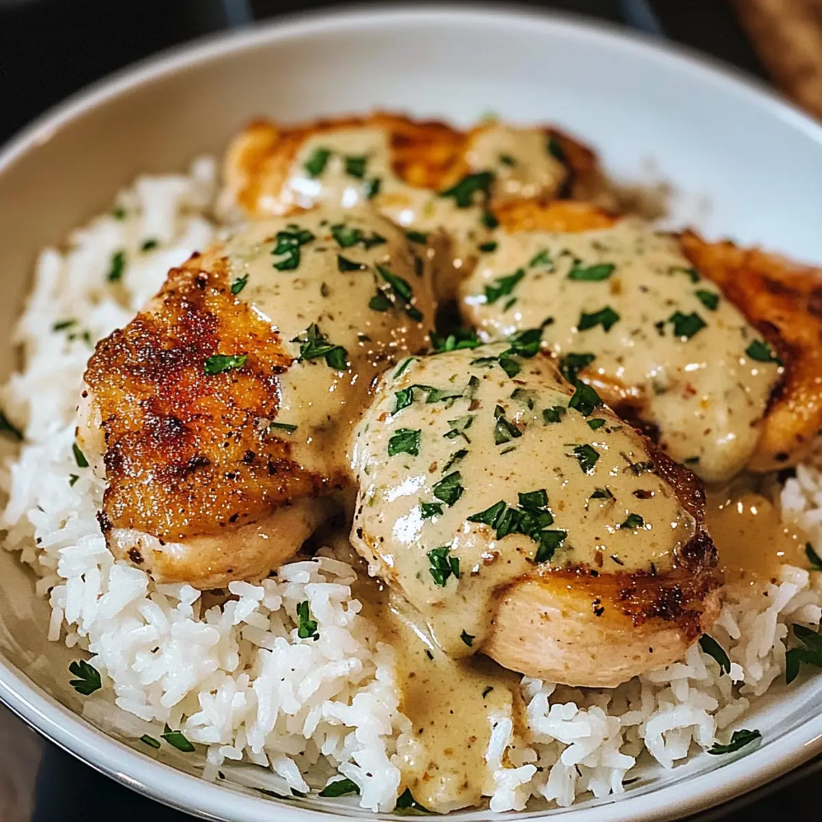 - Low-Carb-Option: Serviere das cremige Hähnchen auf einem Bett aus Blumenkohlreis für eine kohlenhydratarme Alternative.