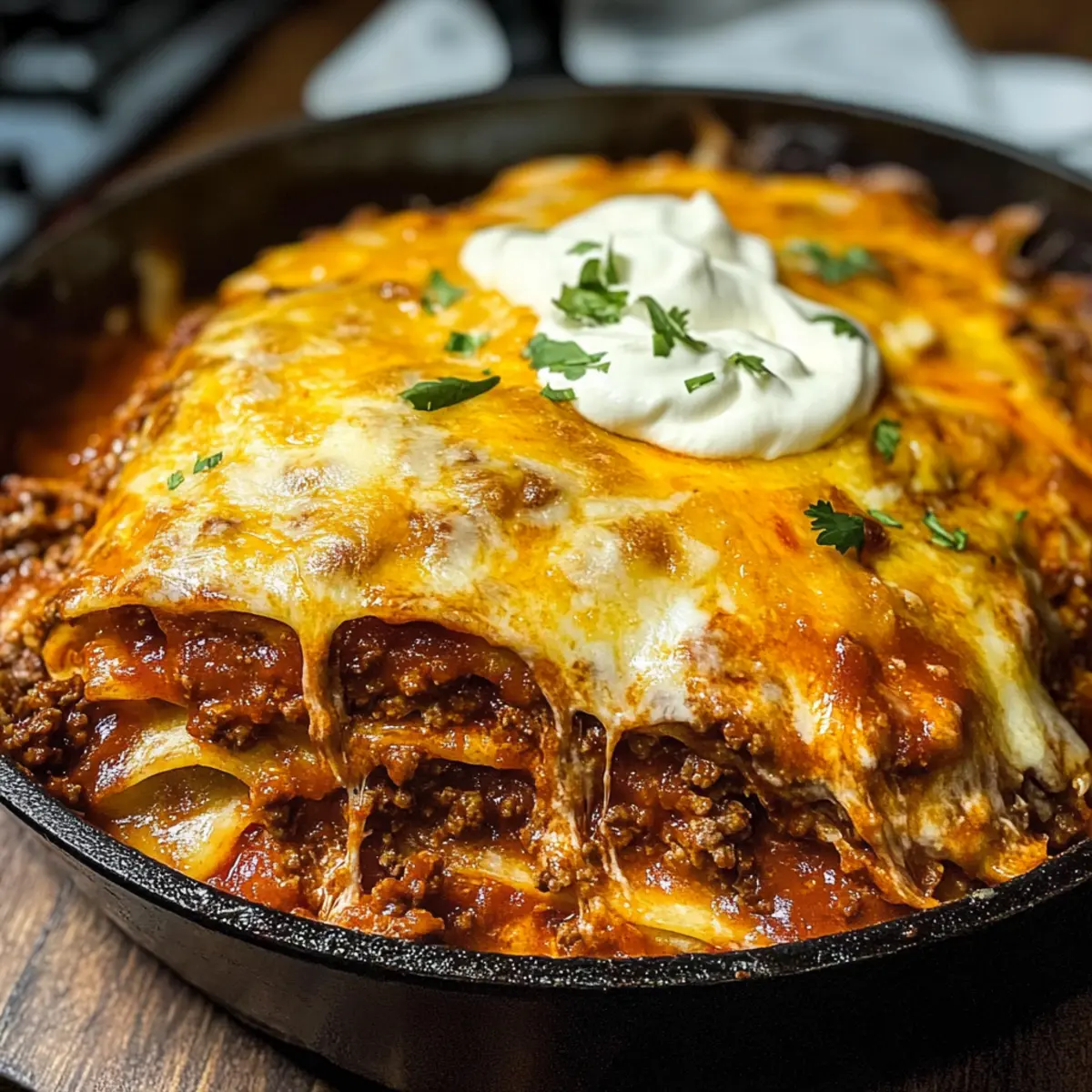 Es war ein stressiger Wochentag, als ich wieder einmal nach einer schnellen und doch köstlichen Lösung für das Abendessen suchte. Der Gedanke an einen Ein-Pfannen-Rinderhackfleisch-Enchilada-Auflauf brachte Licht ins Dunkel. Dieses Rezept vereint alles, was ich mir wünsche: Es ist nicht nur einfach zuzubereiten und schnell im Ofen, sondern auch ein echter Hit bei der ganzen Familie. Mit saftigem Hackfleisch, geschmolzenem Käse und leckeren Tortillas wird jede Schicht zu einem absoluten Genuss. Ideal für beschäftigte Wochenabende, lässt sich dieser Auflauf auch erweitern und anpassen – so zaubern Sie im Handumdrehen eine individuelle Variante, die jedem schmeckt. Neugierig auf das Rezept? Lassen Sie uns gleich eintauchen!