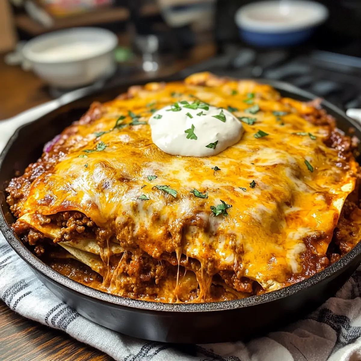 - Optimal schichten: Achten Sie darauf, die Anzahl der Tortillas an die Größe Ihrer Pfanne anzupassen, um ein harmonisches Schichten zu gewährleisten.