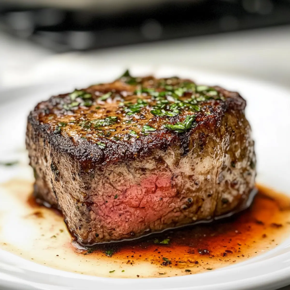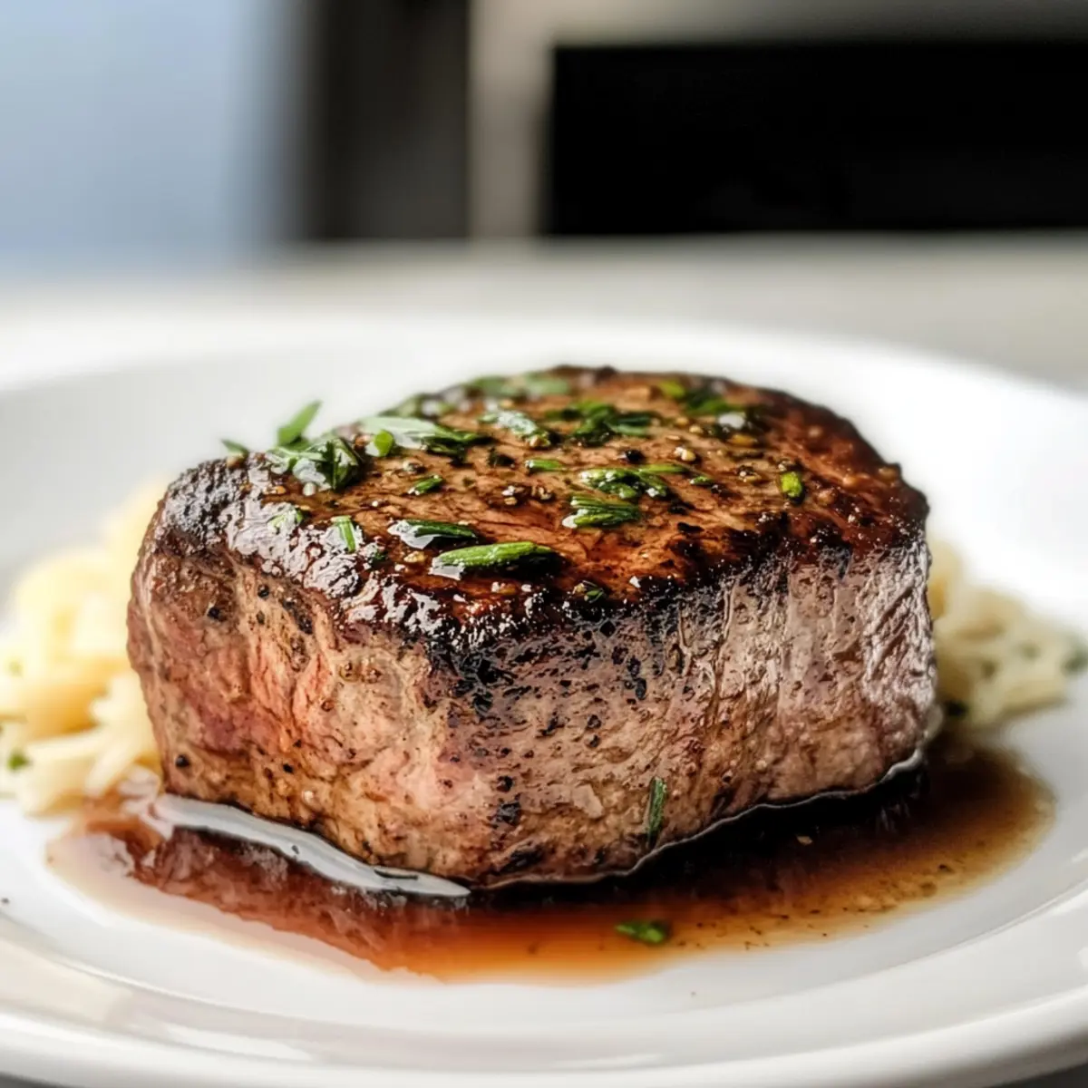Nimm die Pfanne aus dem Ofen und lasse die Steaks 5 Minuten ruhen, während sie in der Pfanne bleiben. Dies hilft, die Säfte gleichmäßig im Fleisch zu verteilen. In dieser Zeit wird der köstliche Duft des Einfachen Filet Mignon deinen Raum erfüllen.