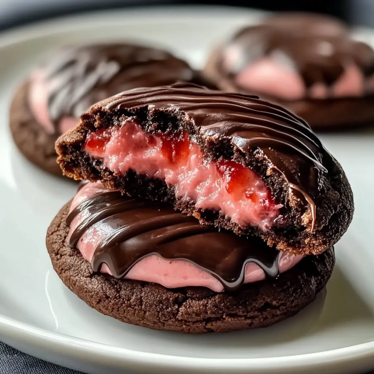 Einfache Schokoladenüberzogene Erdbeerplätzchen genießen