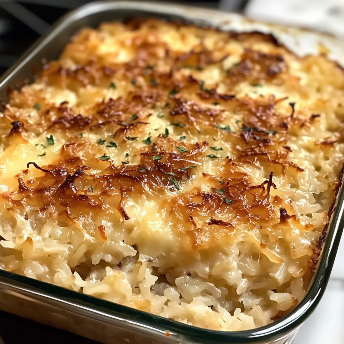 Französische Zwiebel-Suppe Reis-Auflauf Rezept