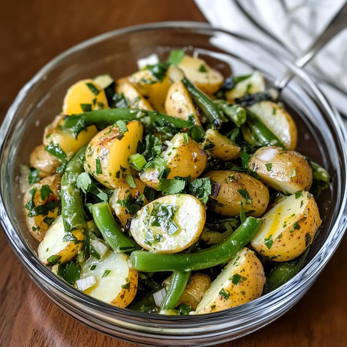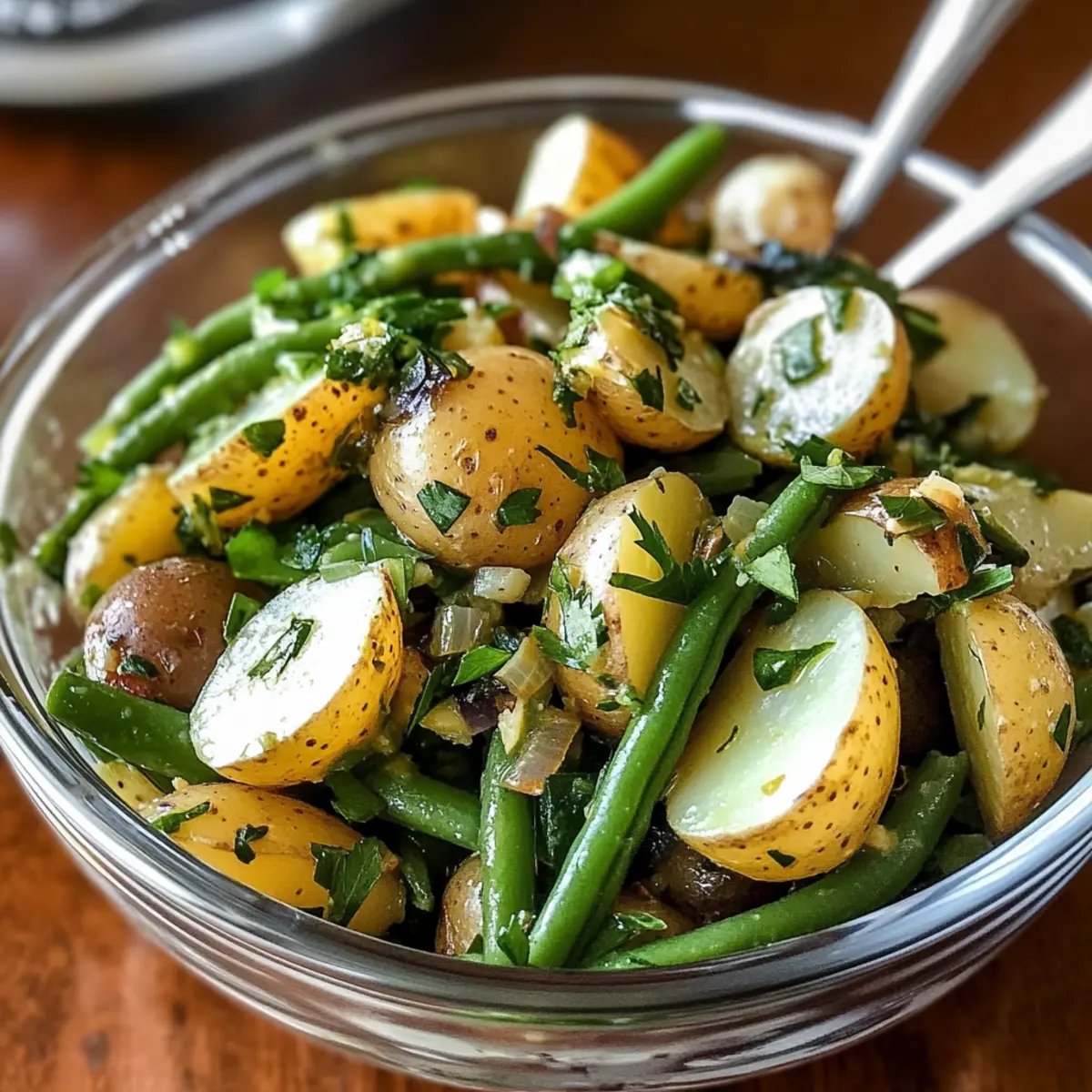 Französischer Kartoffel- und grüne Bohnen-Salat ist nicht nur ein Fest für die Sinne, sondern auch unglaublich einfach zuzubereiten. Mit gerade einmal wenigen Zutaten kannst du ein Geschmackserlebnis schaffen, das deine Gäste begeistern wird. Gesunde Zutaten wie frische Kräuter und knackige grüne Bohnen machen ihn besonders leicht und bekömmlich. Vielfalt ist gegeben, denn du kannst verschiedene Kartoffelsorten und Oliven verwenden, um ihn nach deinem Geschmack anzupassen. Perfekt für jeden Anlass, vom Picknick bis zu eleganten Dinnerpartys, bringst du mit diesem Rezept mediterranes Flair auf den Tisch, ohne auf überflüssige Kalorien zu achten. Zudem lässt sich dieser Salat ganz einfach im Voraus zubereiten, was ihn zu einem zeitersparenden Genuss für deinen Alltag macht!