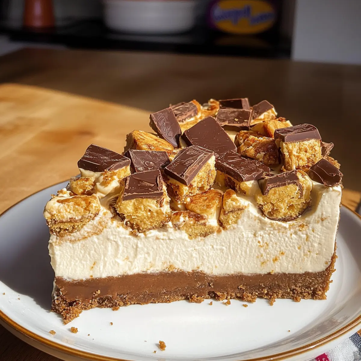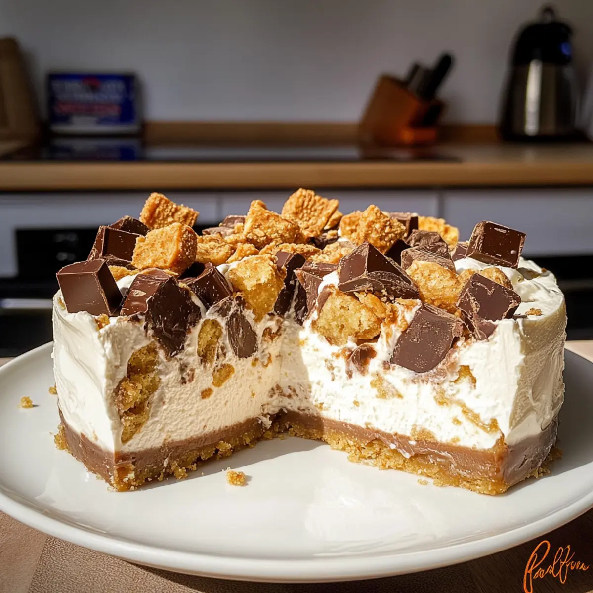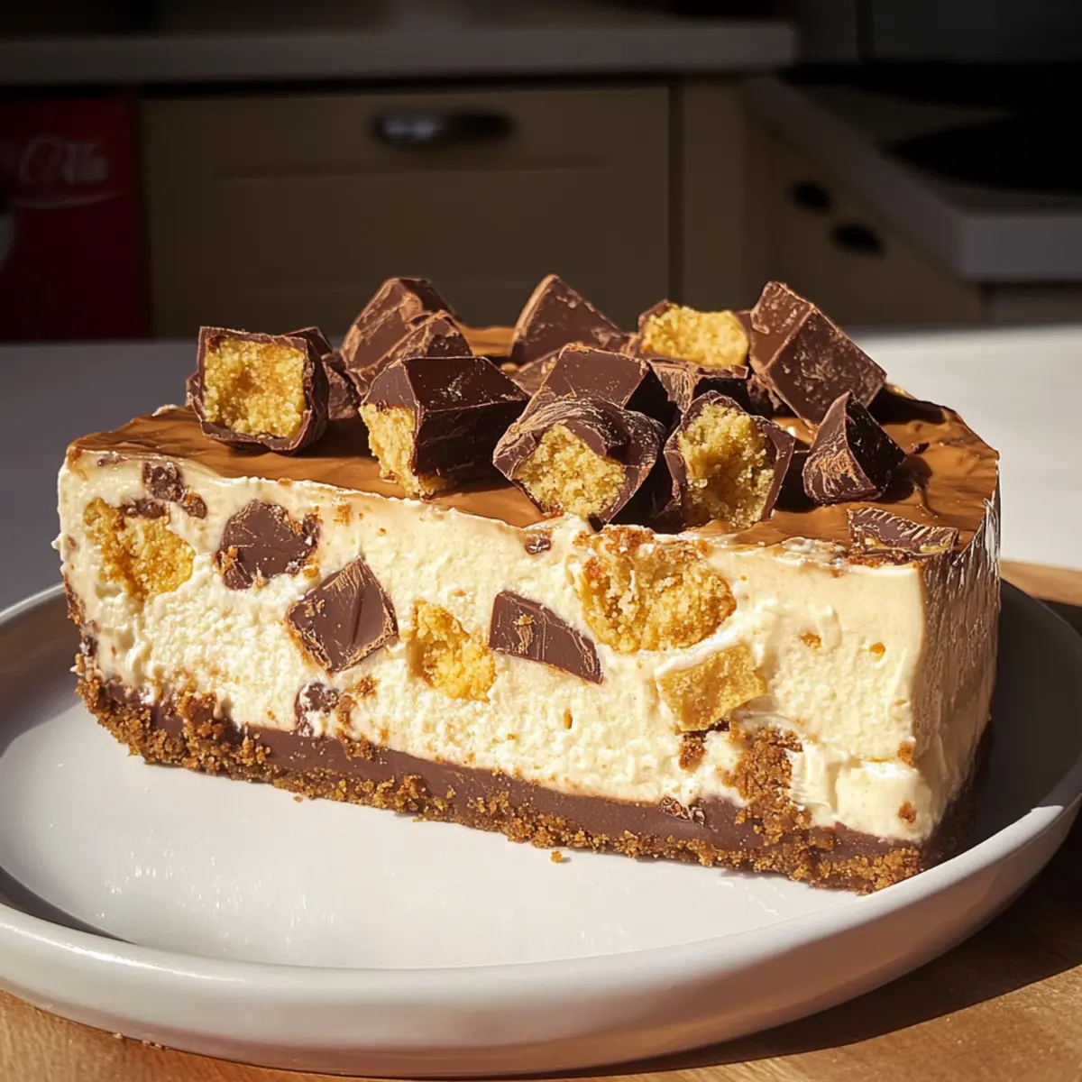 Sündhafte Schicht: Ersetzen Sie die Crunchie-Riegel durch Snickers oder Mars-Riegel, um Ihre persönliche Knusprigkeit nach Belieben zu gestalten. Diese Süßigkeiten verleihen dem Käsekuchen eine ganz neue Dimension.