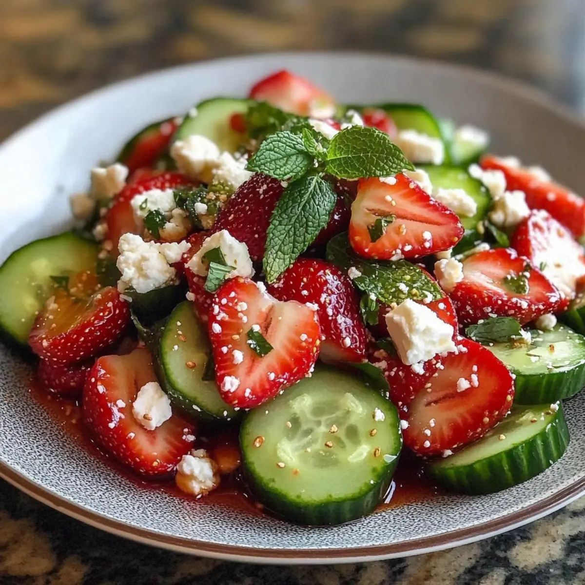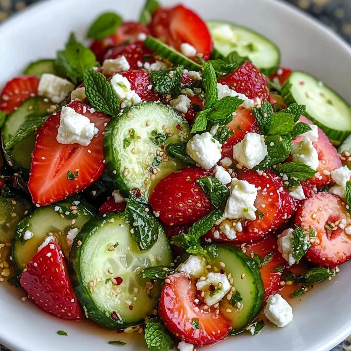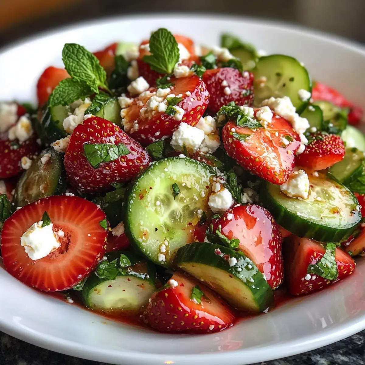Frische Zutaten: Der Gurken Erdbeer Salat bietet eine harmonische Mischung aus knackigen Gurken und süßen Erdbeeren, die auf jeder Teller schön aussieht und schmeckt.