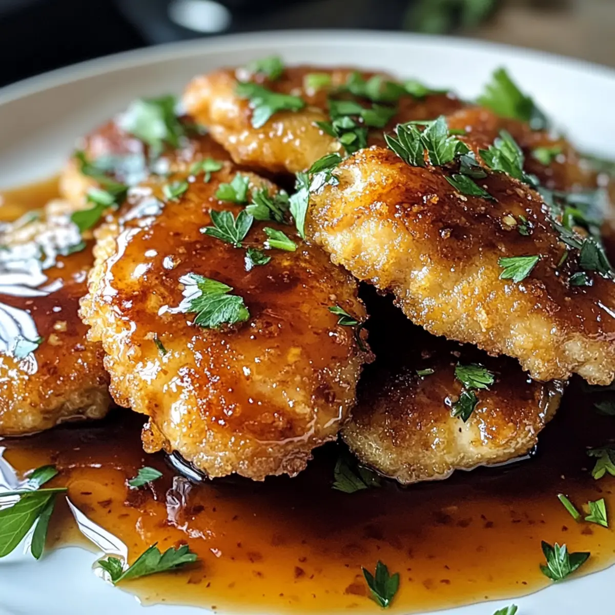 - Drizzle die heiße Honigglasur über die frisch frittierten Hähnchenfrikadellen und serviere sie warm.