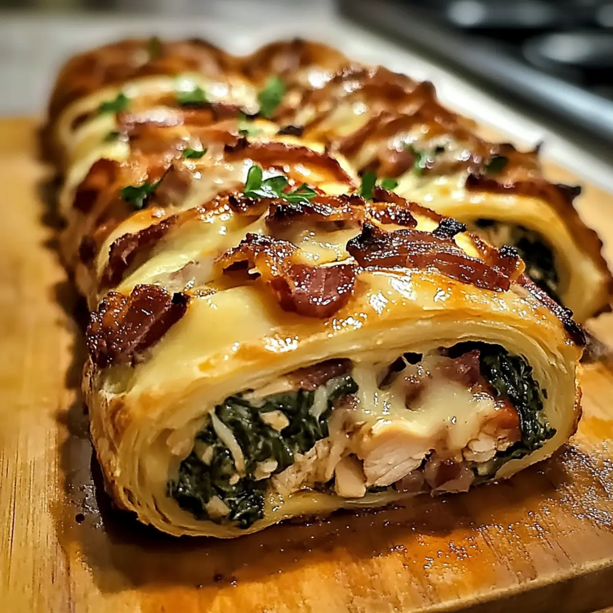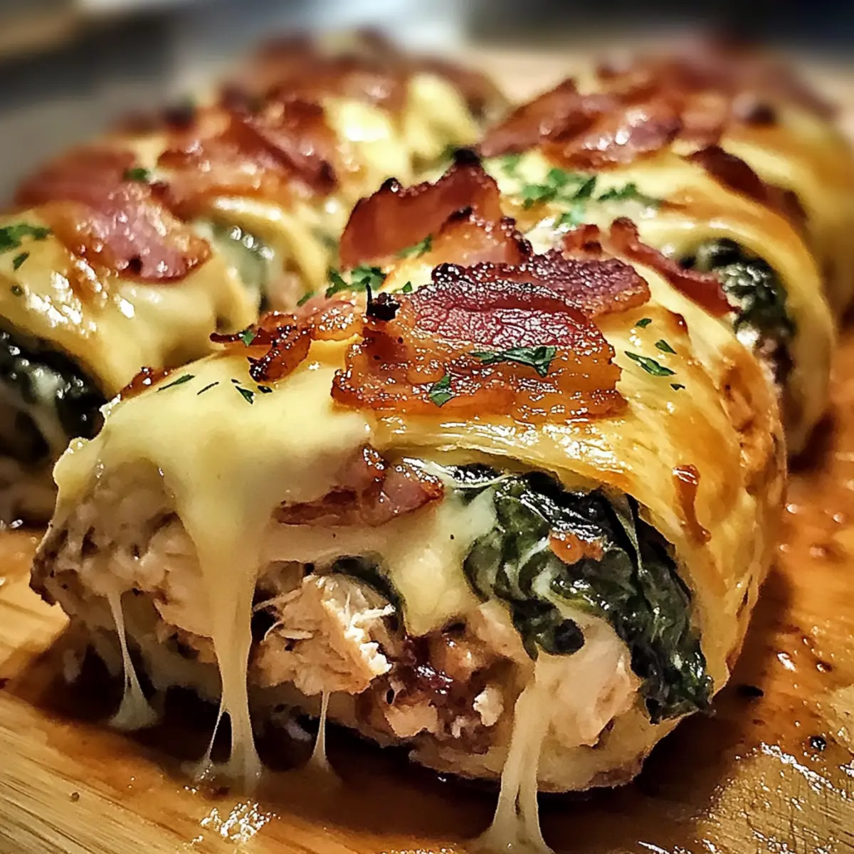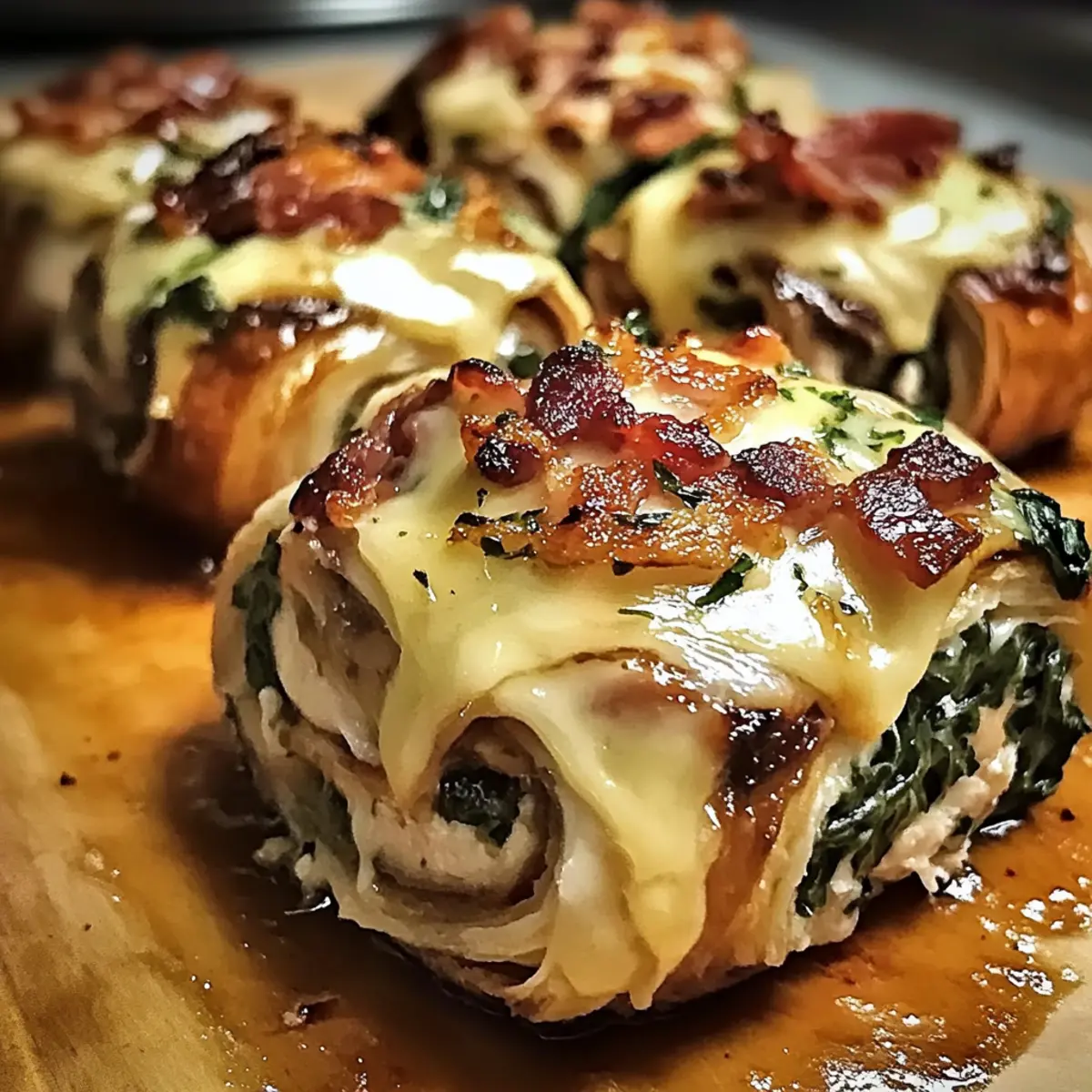 Herzhafte Hähnchen-Spinat-Pinwheels mit Bacon
