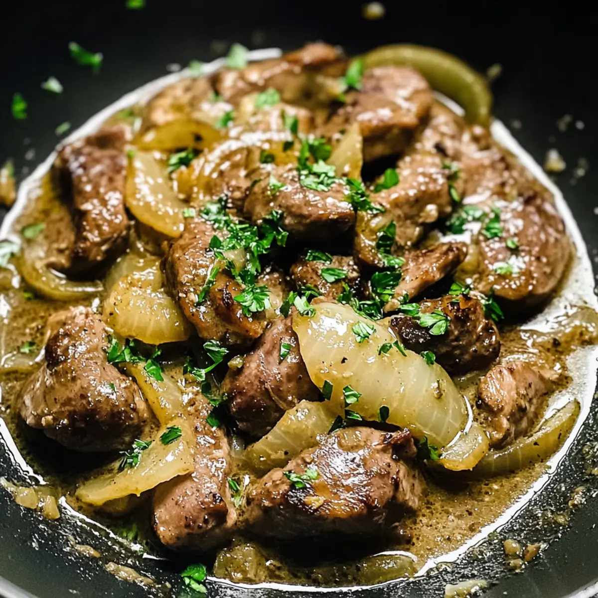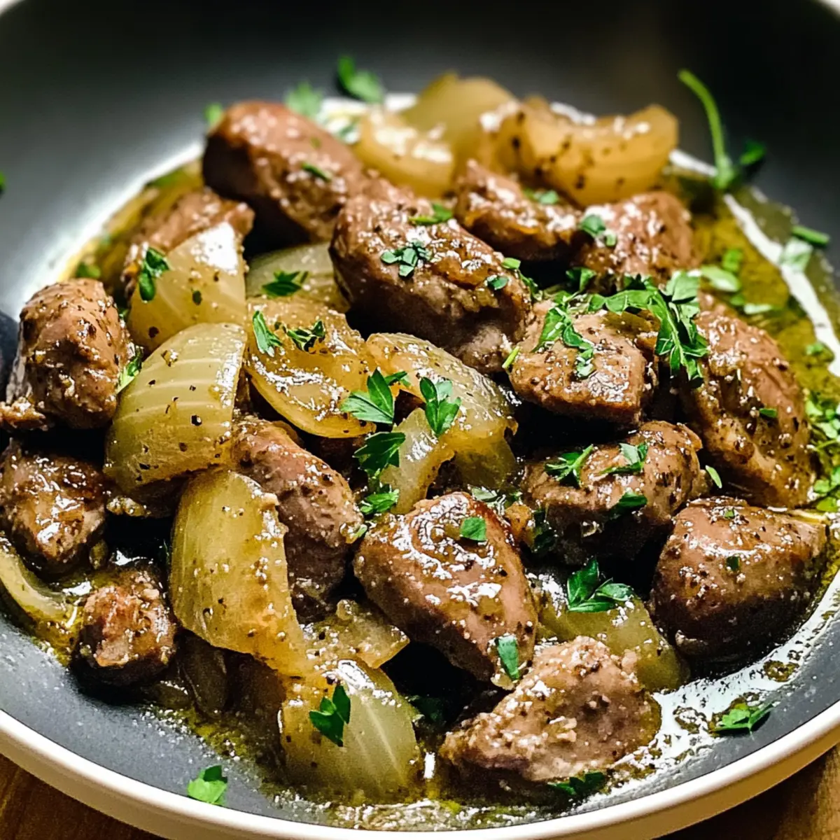 Genießen Sie dieses einfache, aber köstliche Rezept für herzhafte Hühnerleber und Zwiebeln in Sahnesoße!