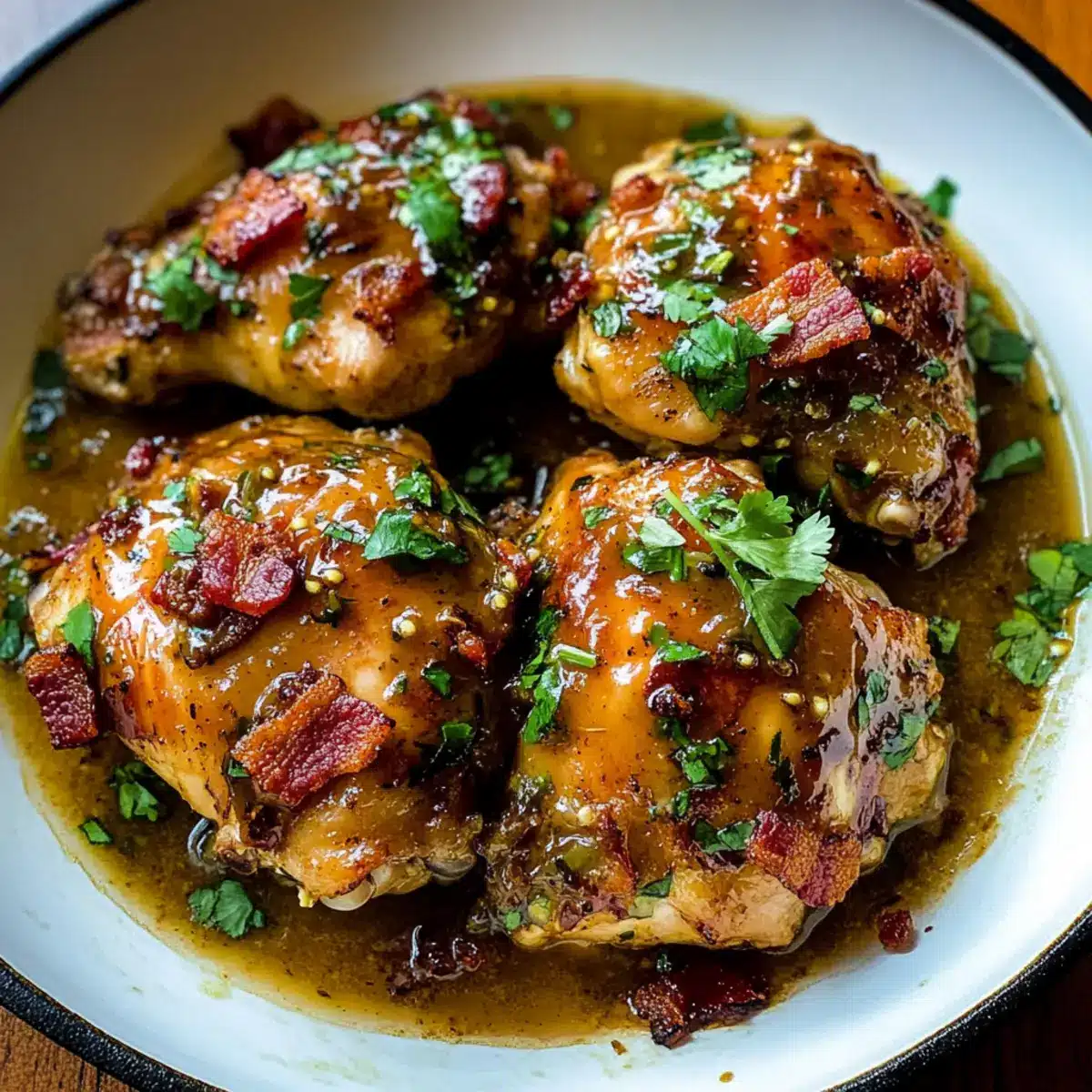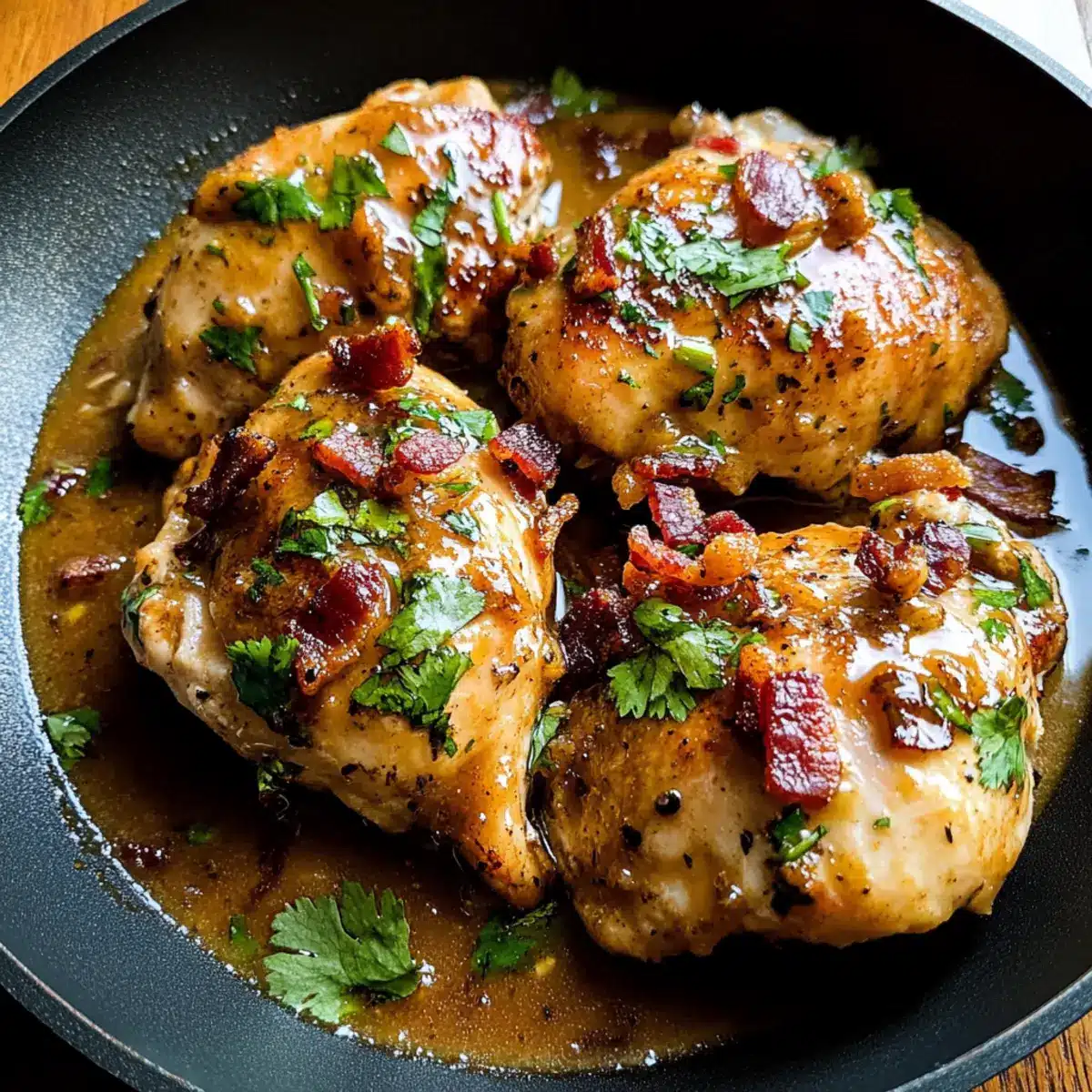 Honig Senf Speck Hähnchen Pfanne in 20 Minuten