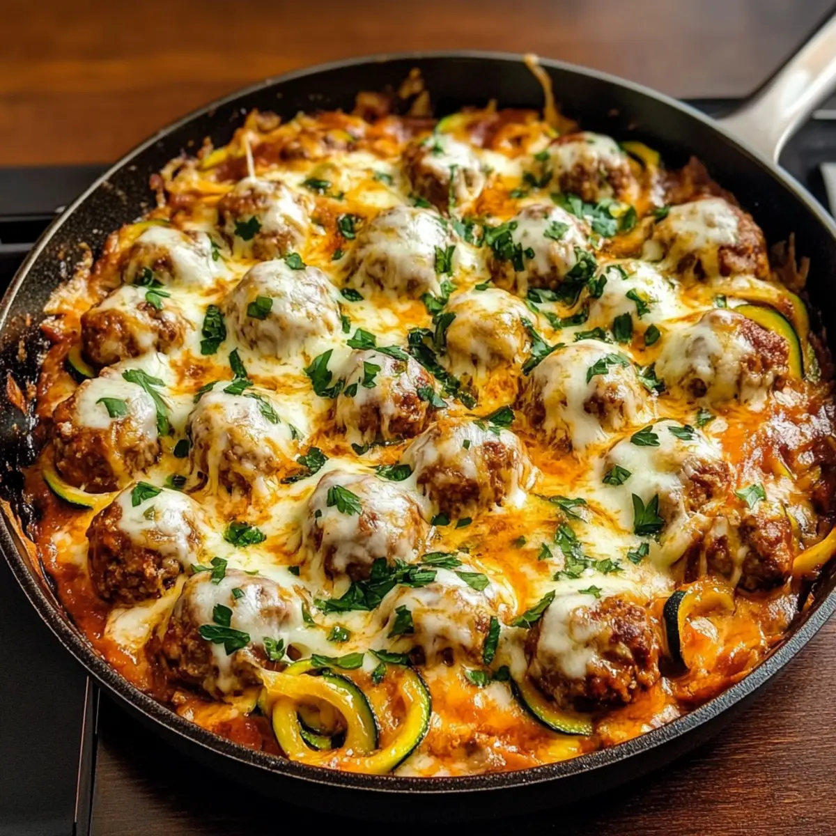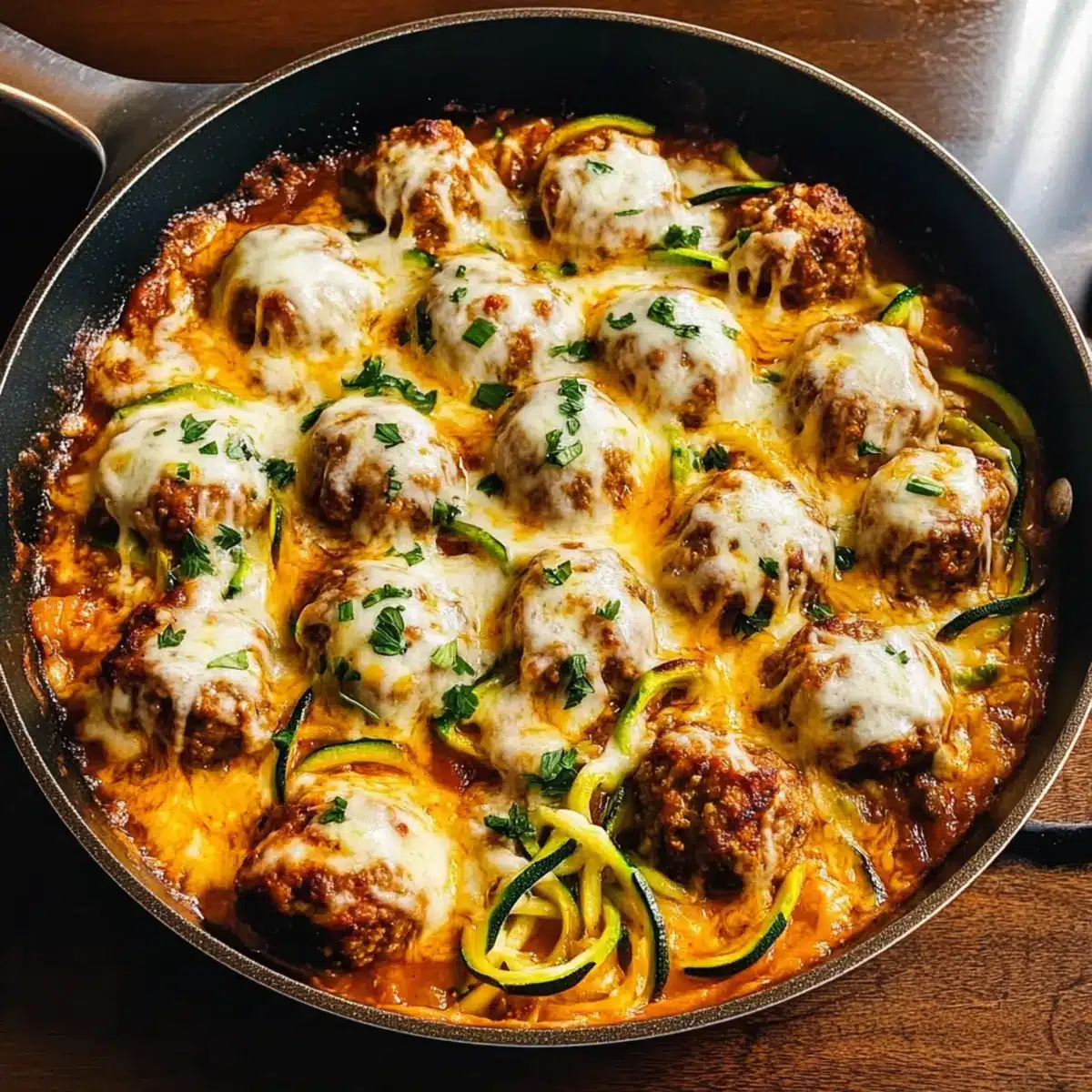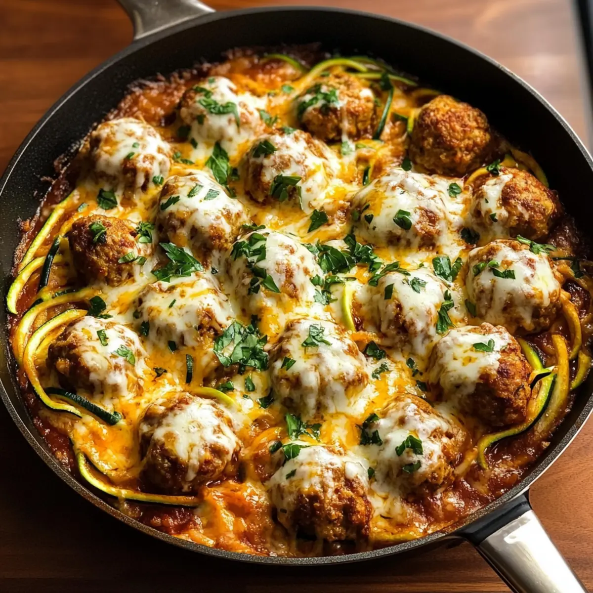 - Küchenutzen: Nutze eine große gusseiserne Pfanne für eine gleichmäßige Wärmeverteilung. So wird deine Käsefleischbällchen und Zucchini-Pfanne perfekt!