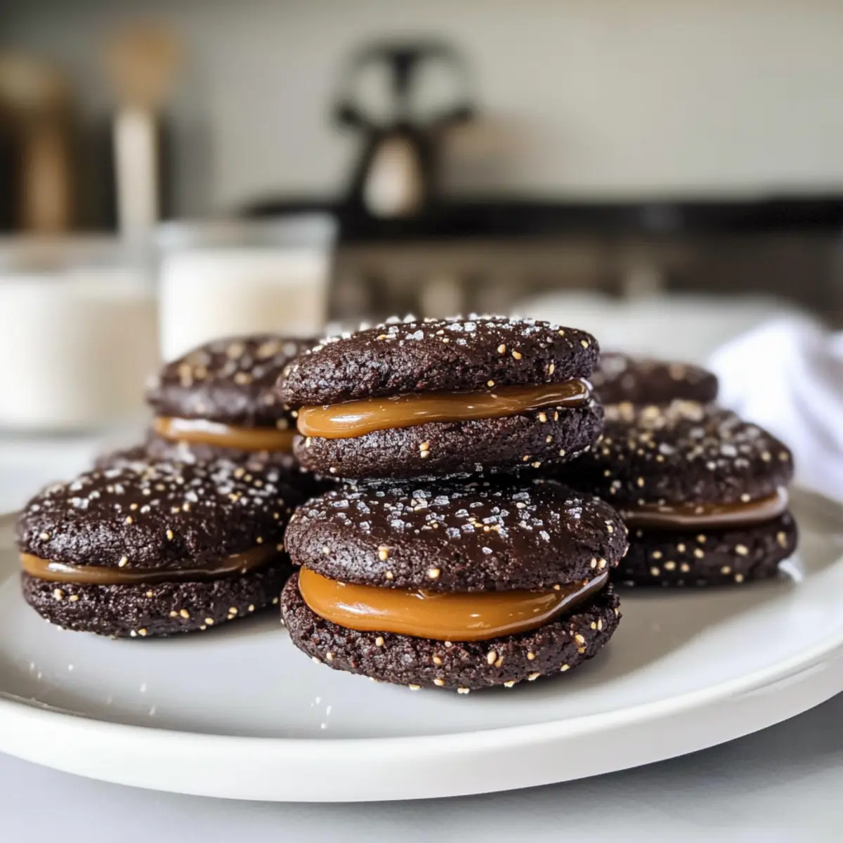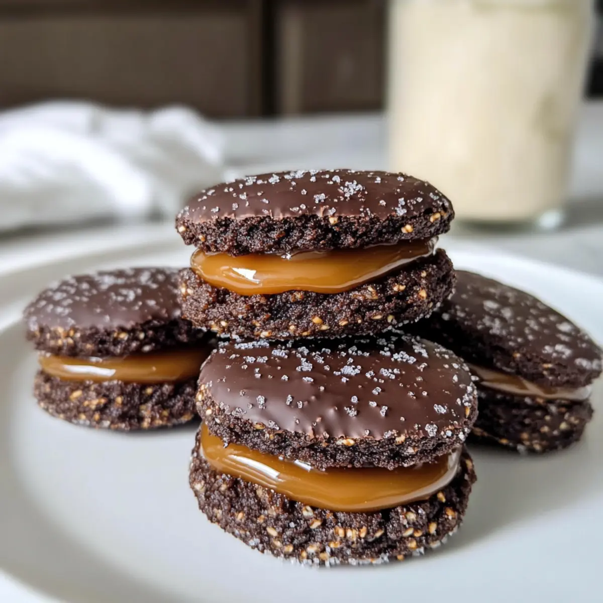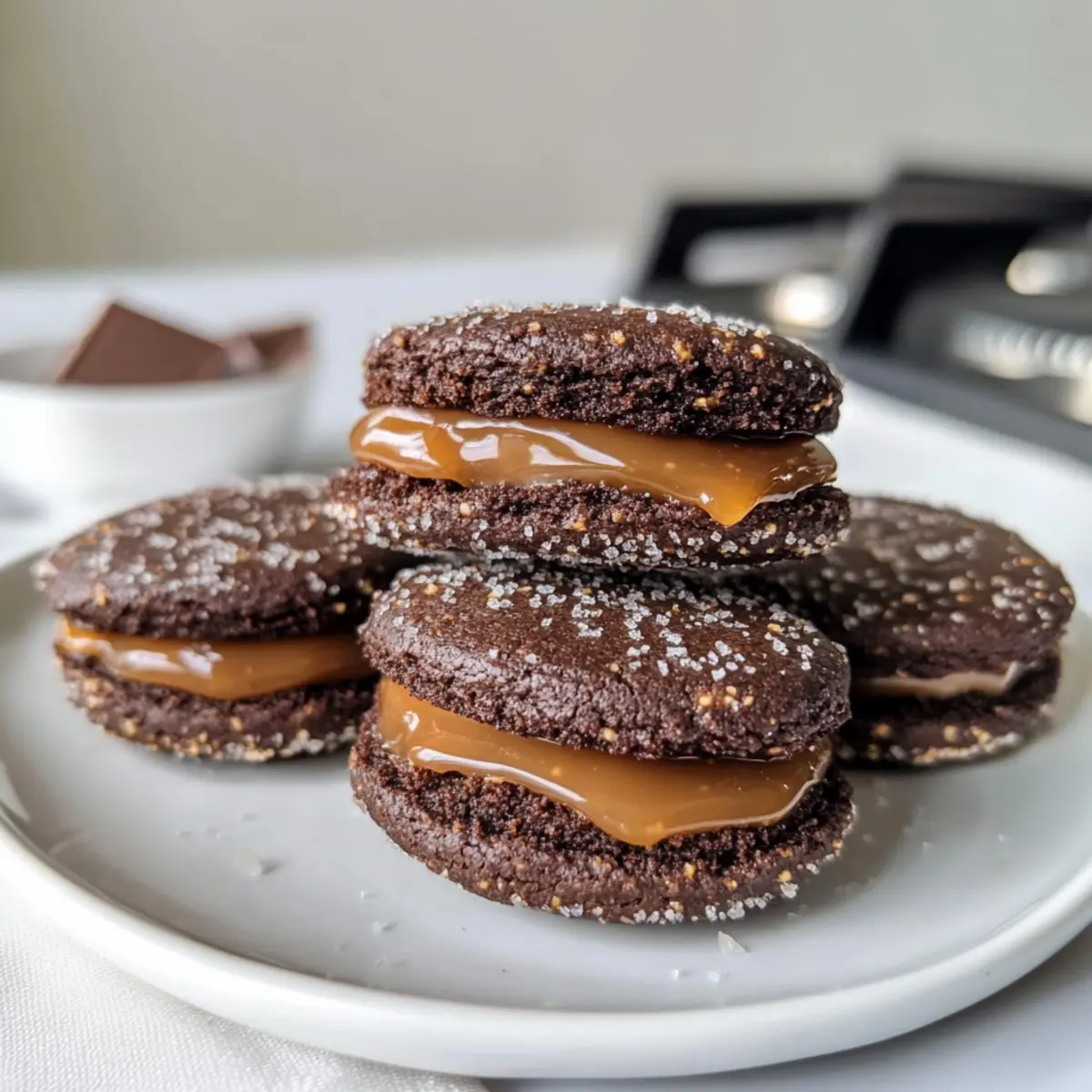 Karamell Schokoladen Sandwich Kekse für Schokoladenliebhaber