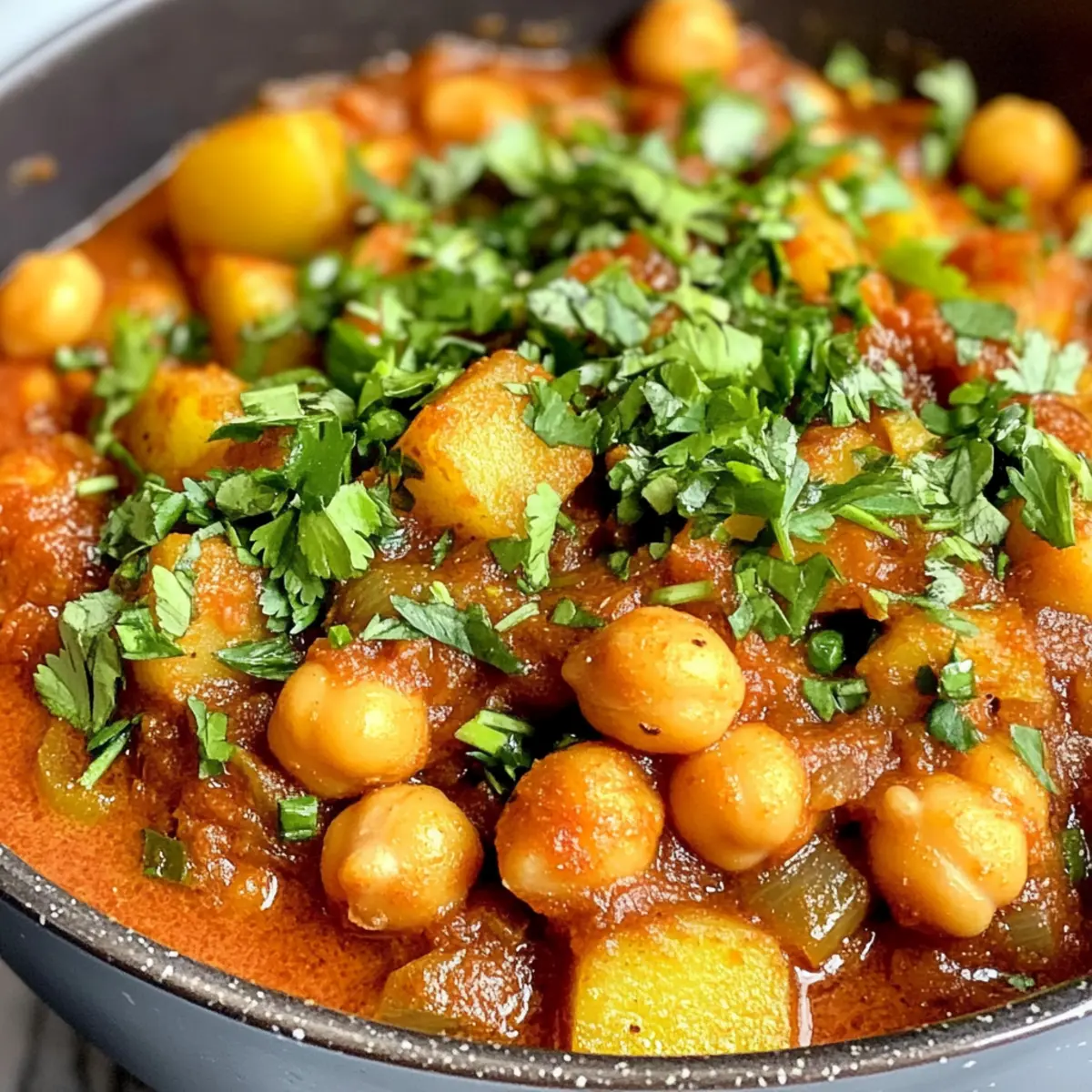 „Hast du je den köstlichen Duft von Gewürzen erlebt, der durch die Küche zieht?“ Als ich zum ersten Mal mein Kichererbsen- und Kartoffelcurry zubereitete, war ich sofort verzaubert von der Wärme und dem Aroma, die mich umhüllten. Dieses einfache, vegane Gericht kombiniert zarte Kartoffeln und proteinreiche Kichererbsen in einer würzigen Tomatensauce, die an hektischen Wochentagen zur echten Umarmung für die Seele wird. Besonders toll ist, dass es schnell zubereitet ist und nicht nur sättigt, sondern auch voller Nährstoffe steckt. Ideal für alle, die sich eine gesunde und leckere Alternative zu Fast Food wünschen! Bist du bereit, dein Zuhause mit diesem unwiderstehlichen Curry zu füllen?