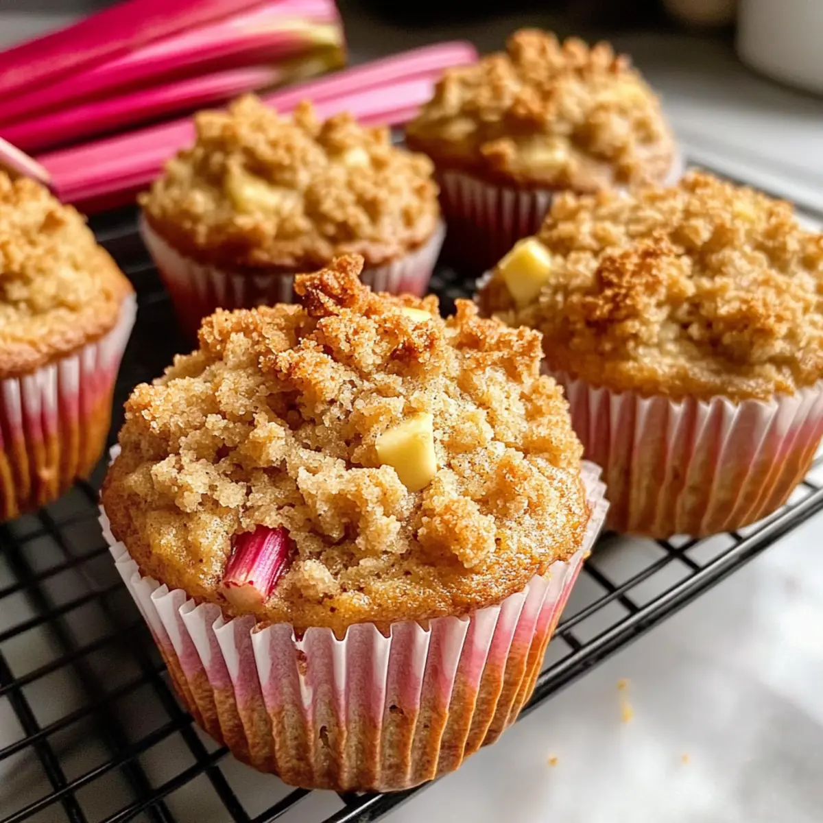 Klassische Rhabarber Hafer Muffins mit Zimtstreuseln