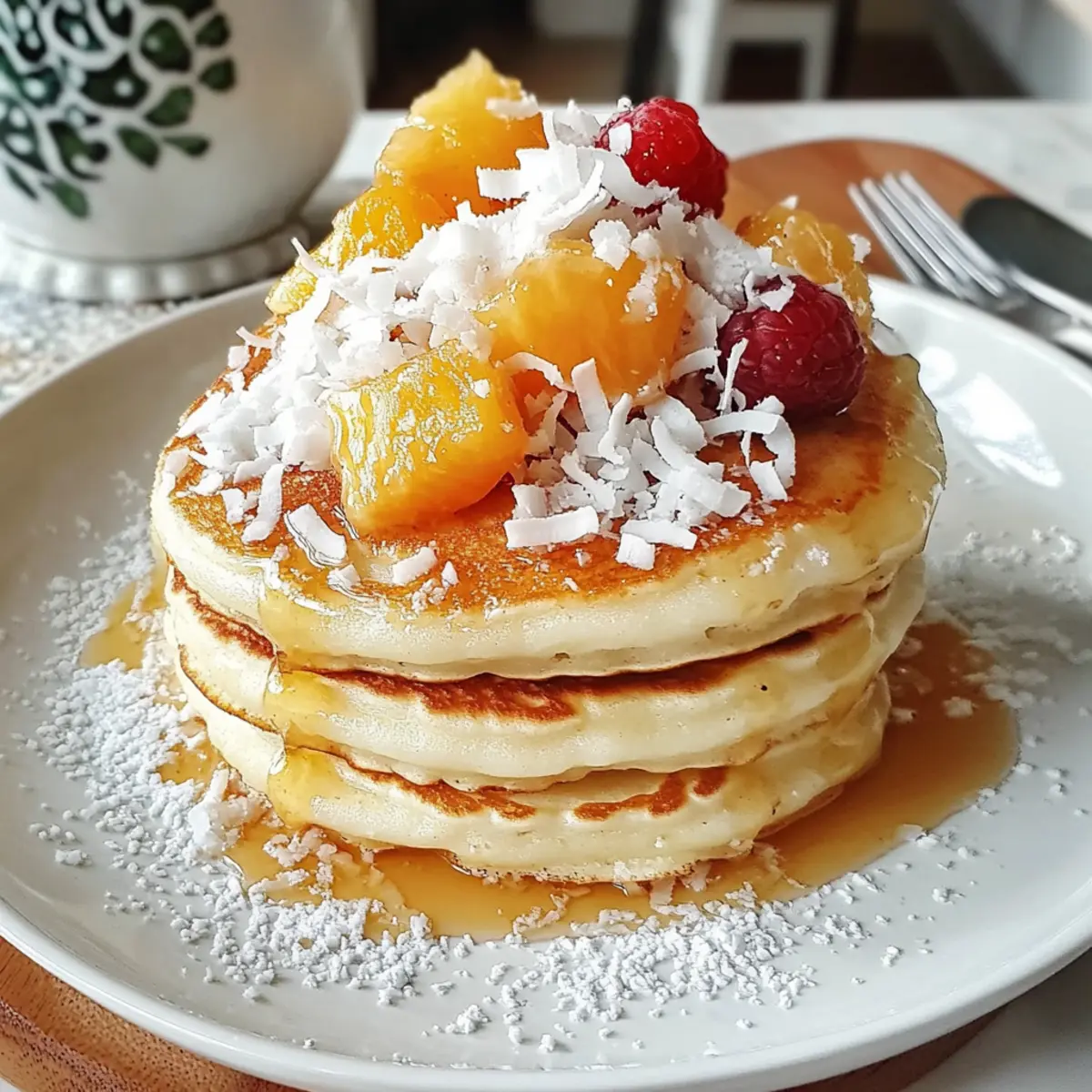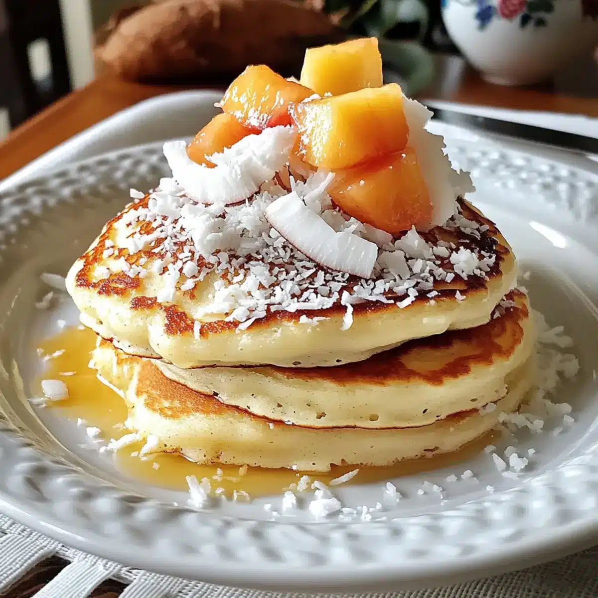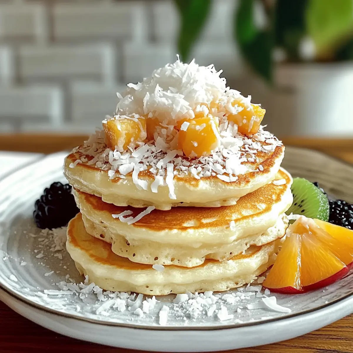Kokosnusscreme-Pfannkuchen für ein tropisches Frühstück