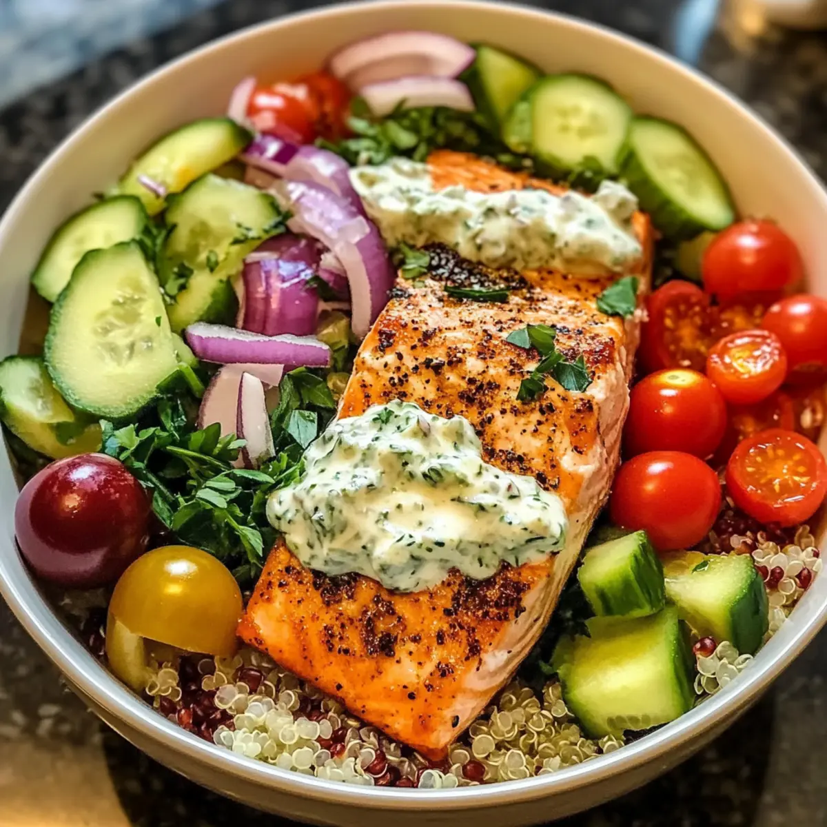 Diese köstlichen Begleiter machen deine Mediterraner Lachs Bowl zu einem eindrucksvollen Festmahl!