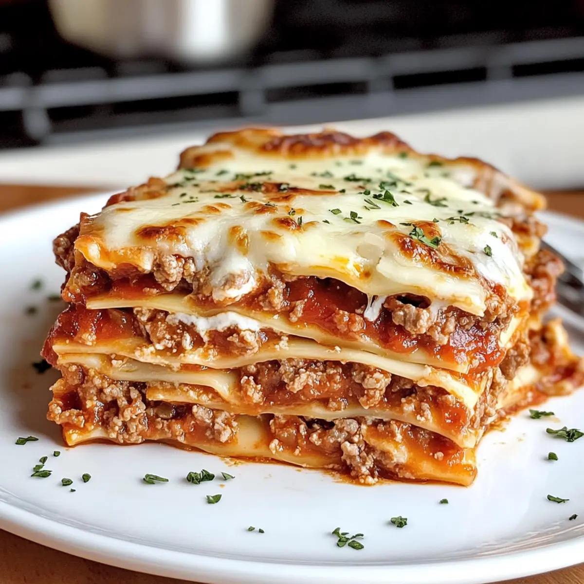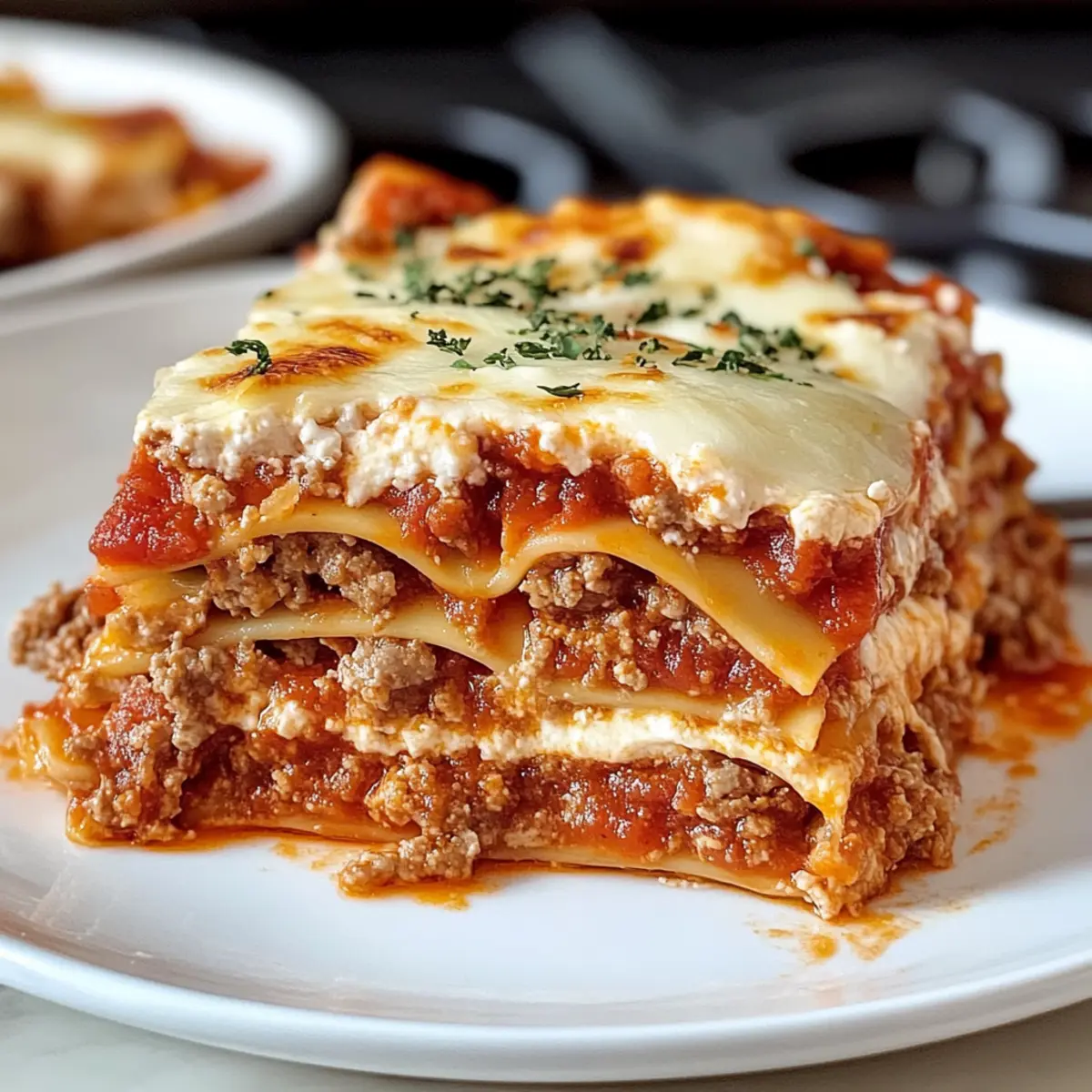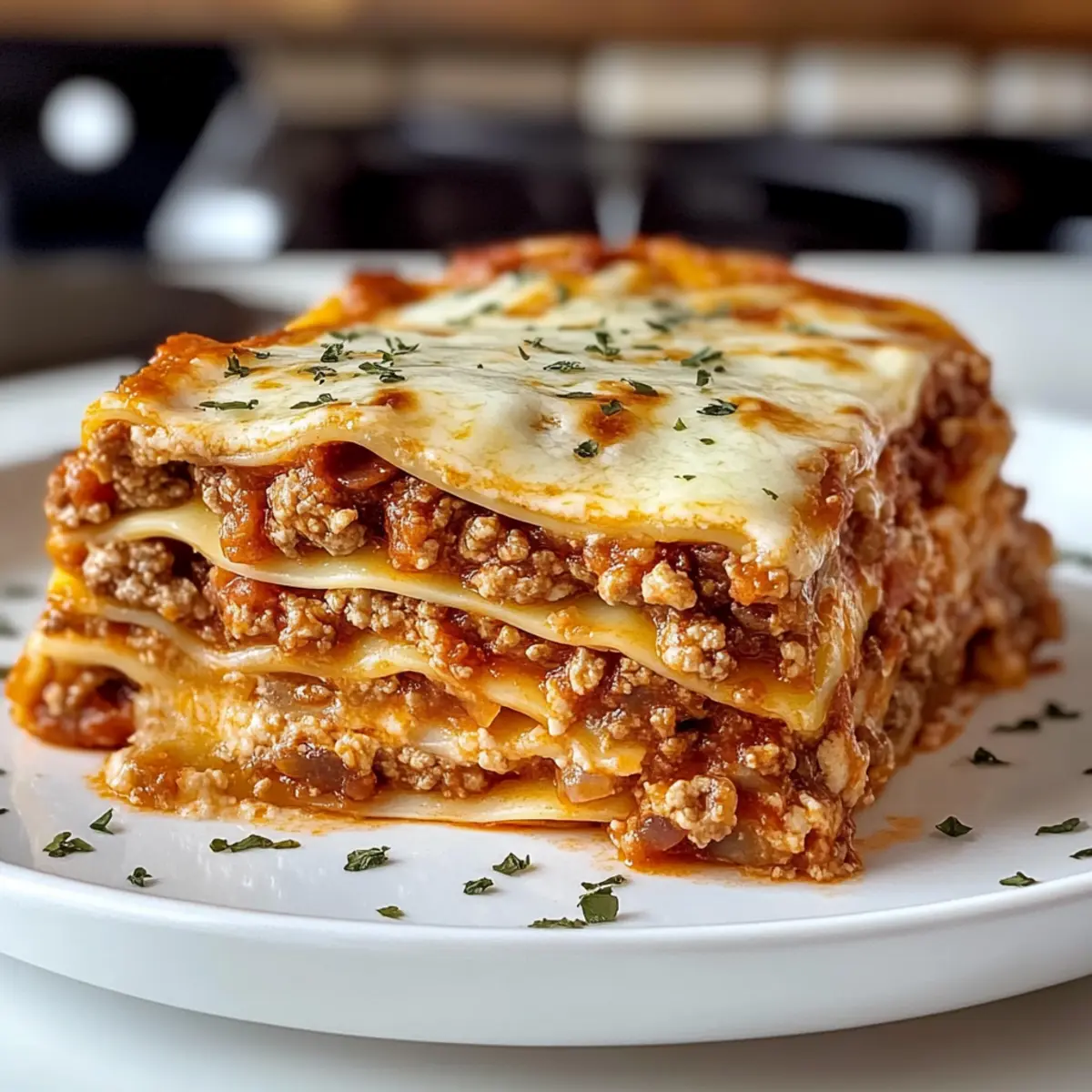 - Schneide die Lasagne in Stücke und serviere sie warm, garniert mit frischer Petersilie.