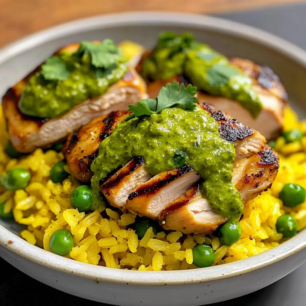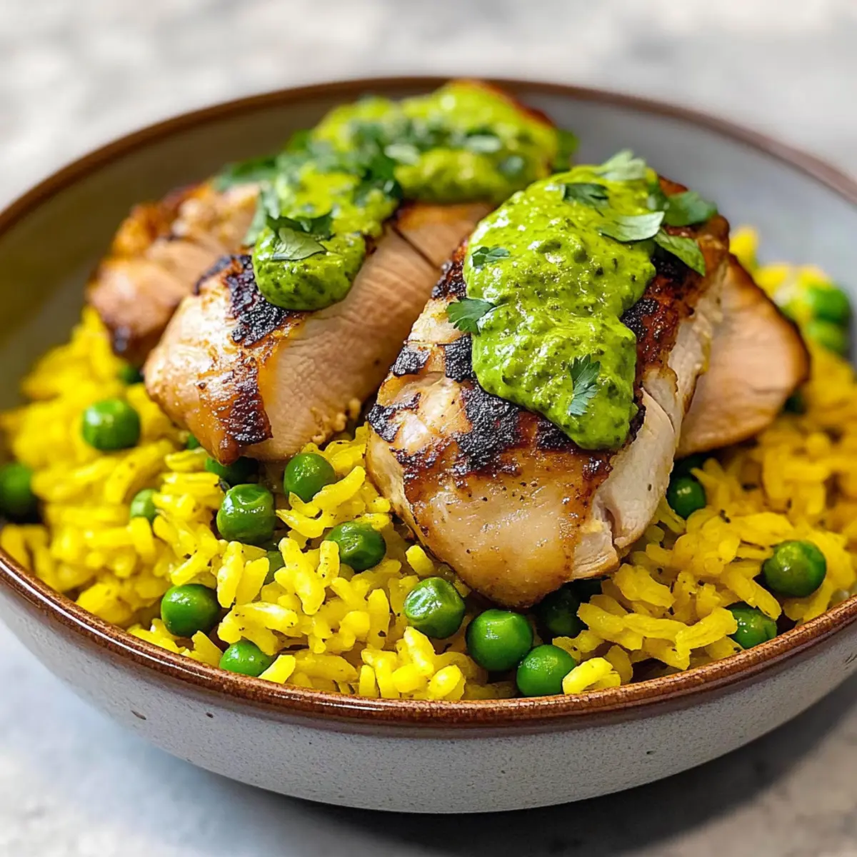 Peruanische Hähnchen und Grüner Sauce Reis Bowls